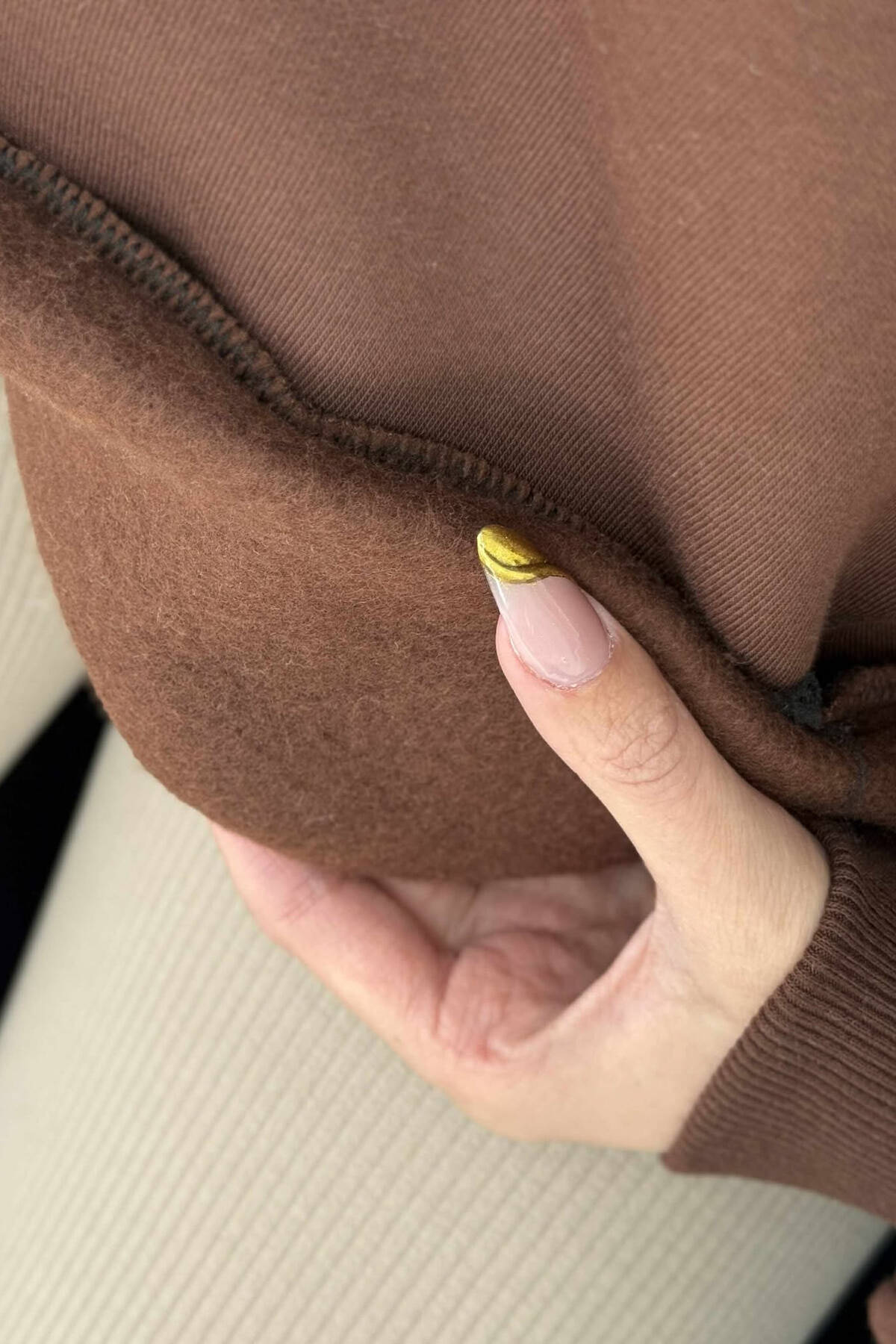 ONE COLOR FLUFFY SIMPLE WOMEN SWEATSHIRT BROWN/KAFE