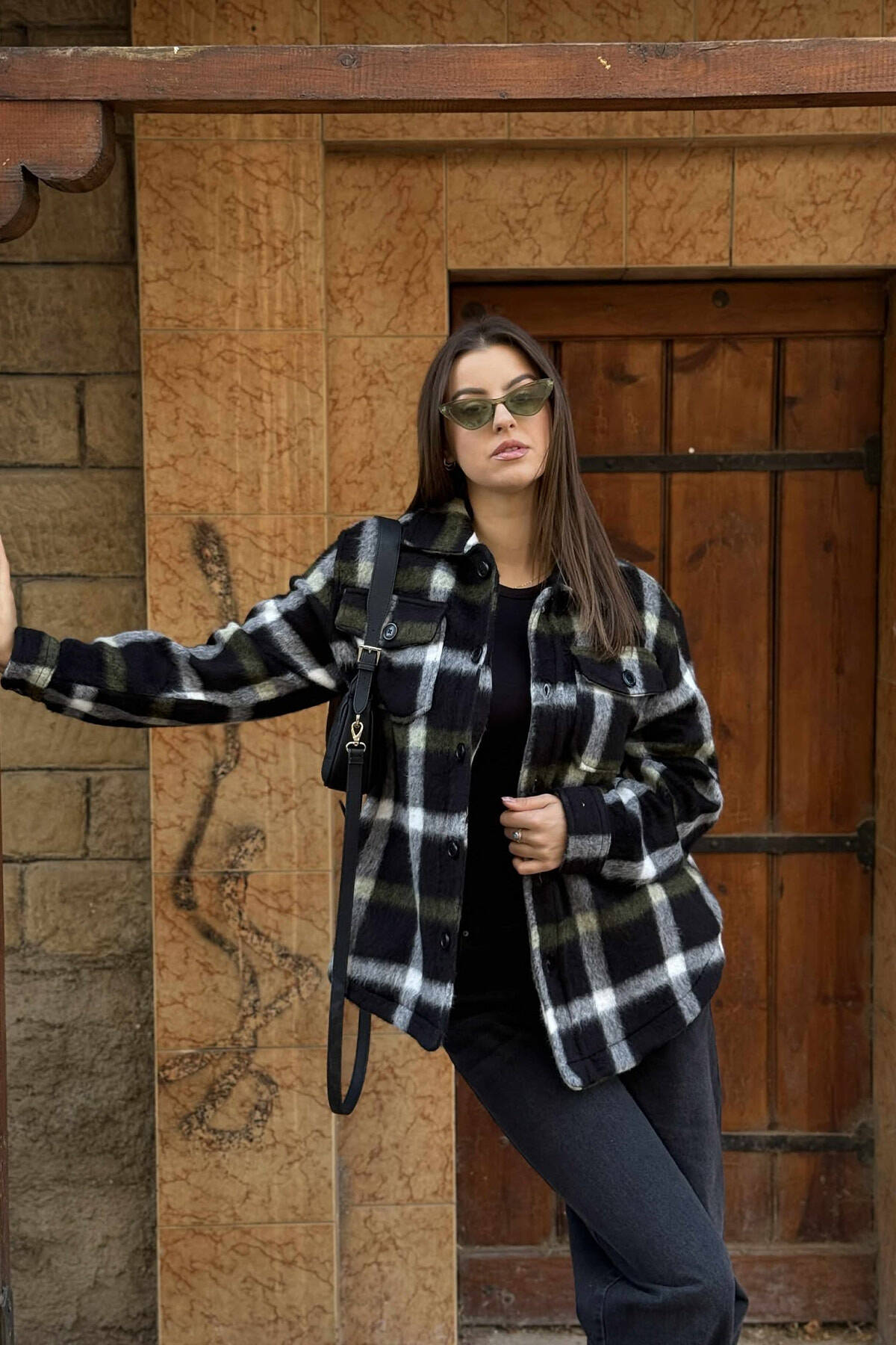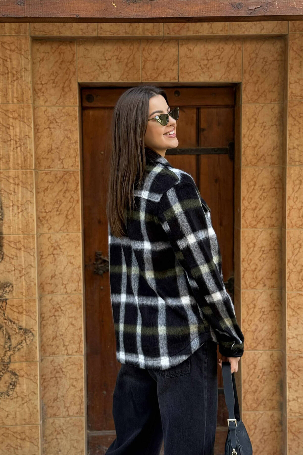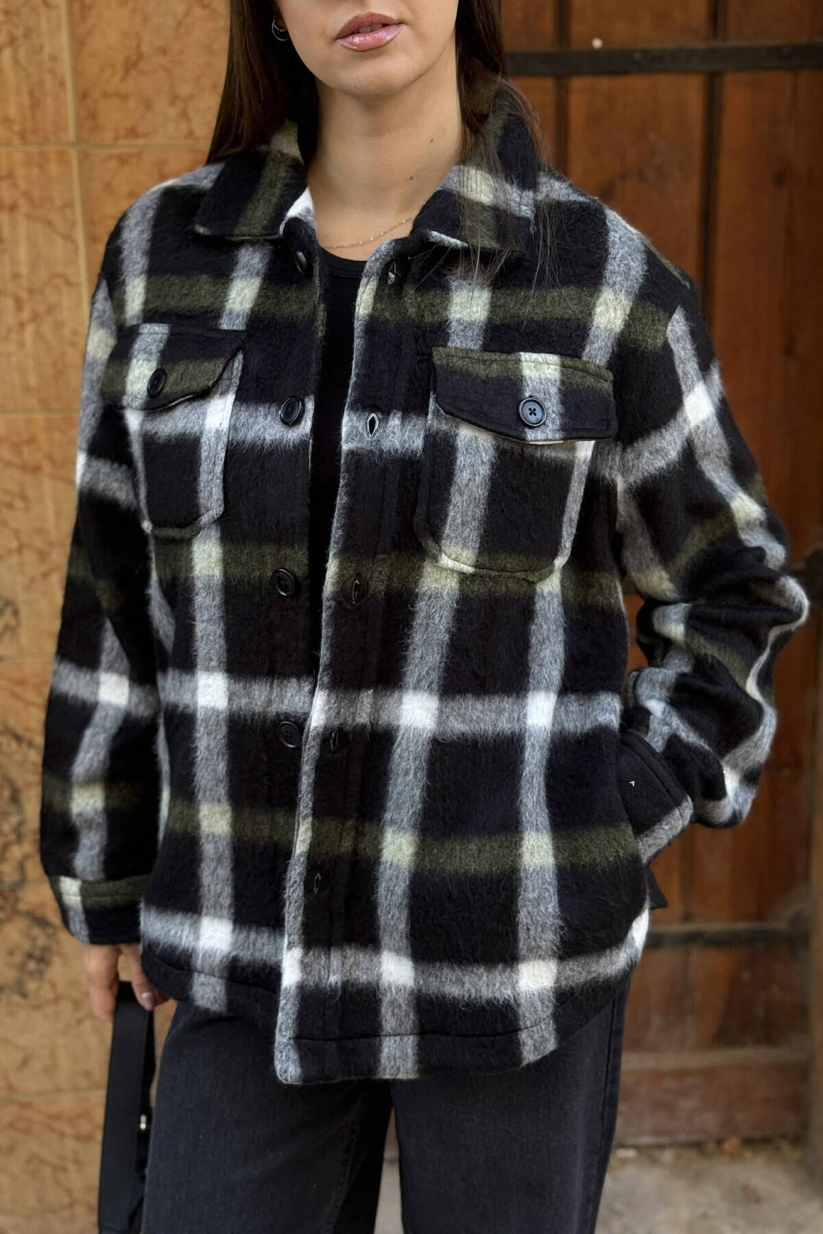 XHAKETË E NGROHTË ME DIZANJE KATRORËSH DHE BUTONA PËR FEMRA NË NGJYRËN E ZEZË