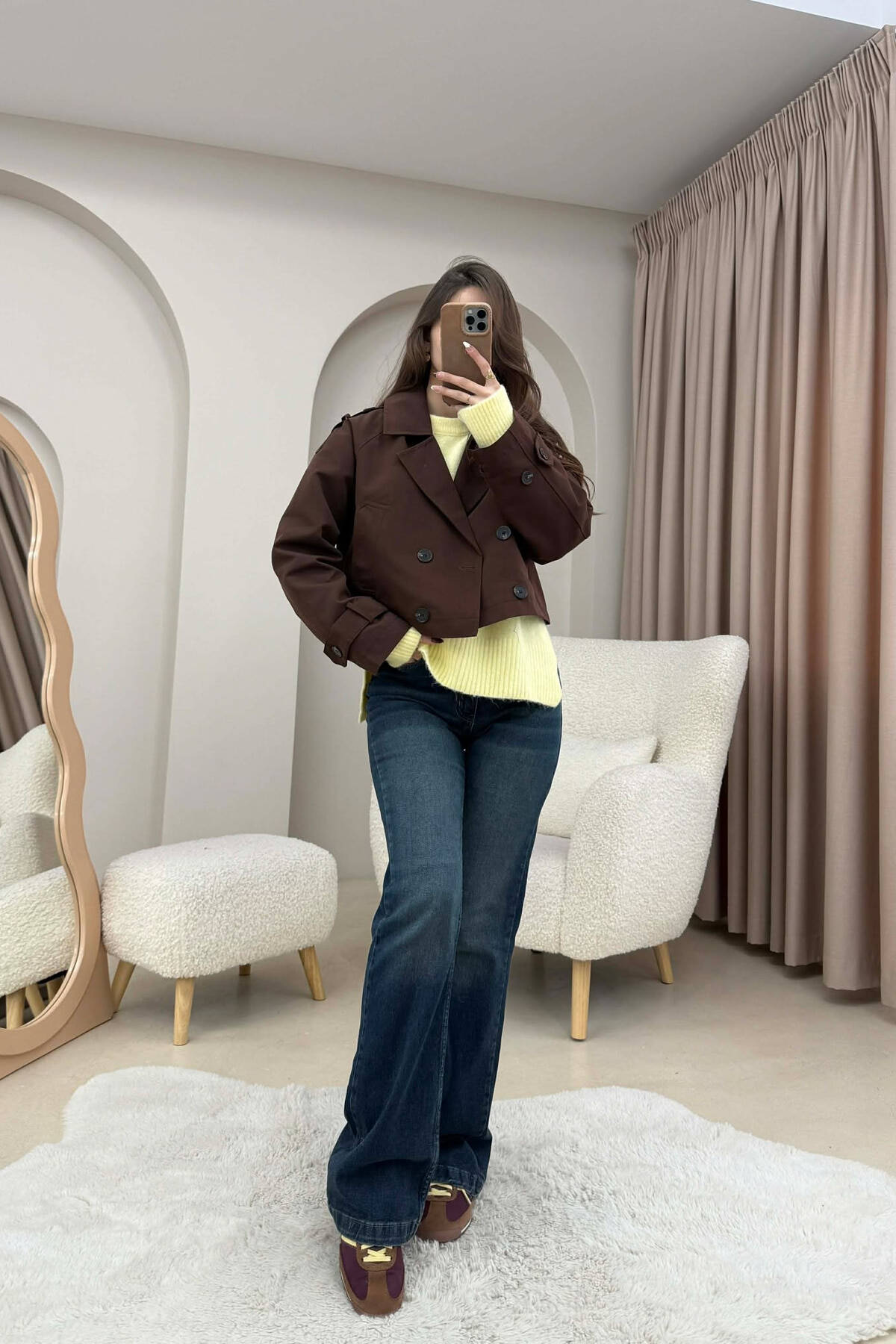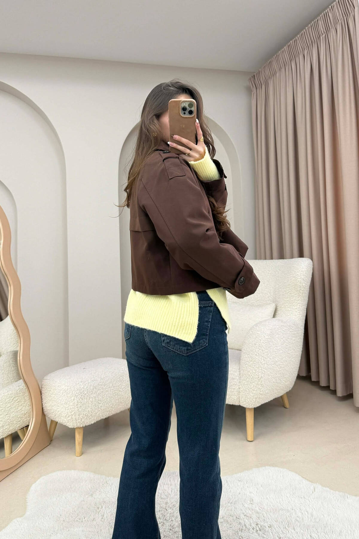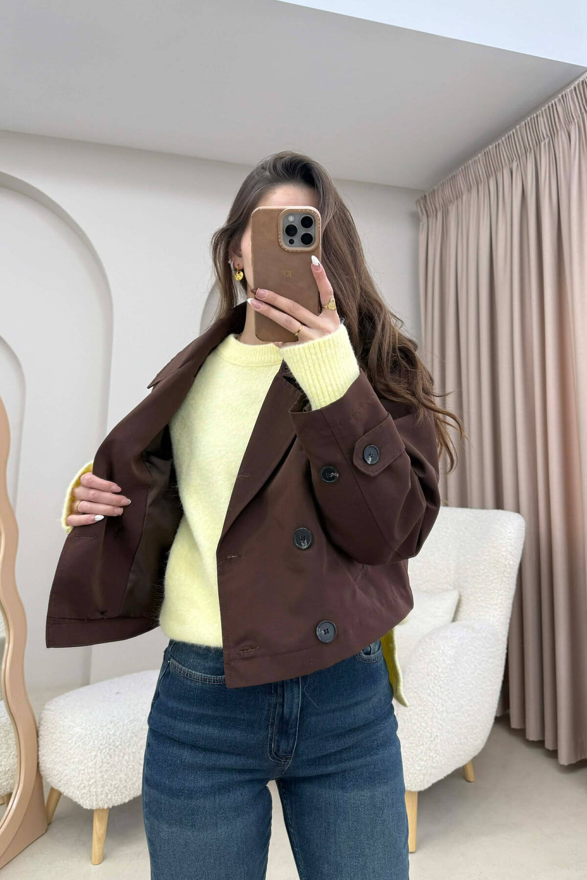PALLTO E SHKURTER NJE NGJYRESHE PER FEMRA NE NGJYRE KAFE