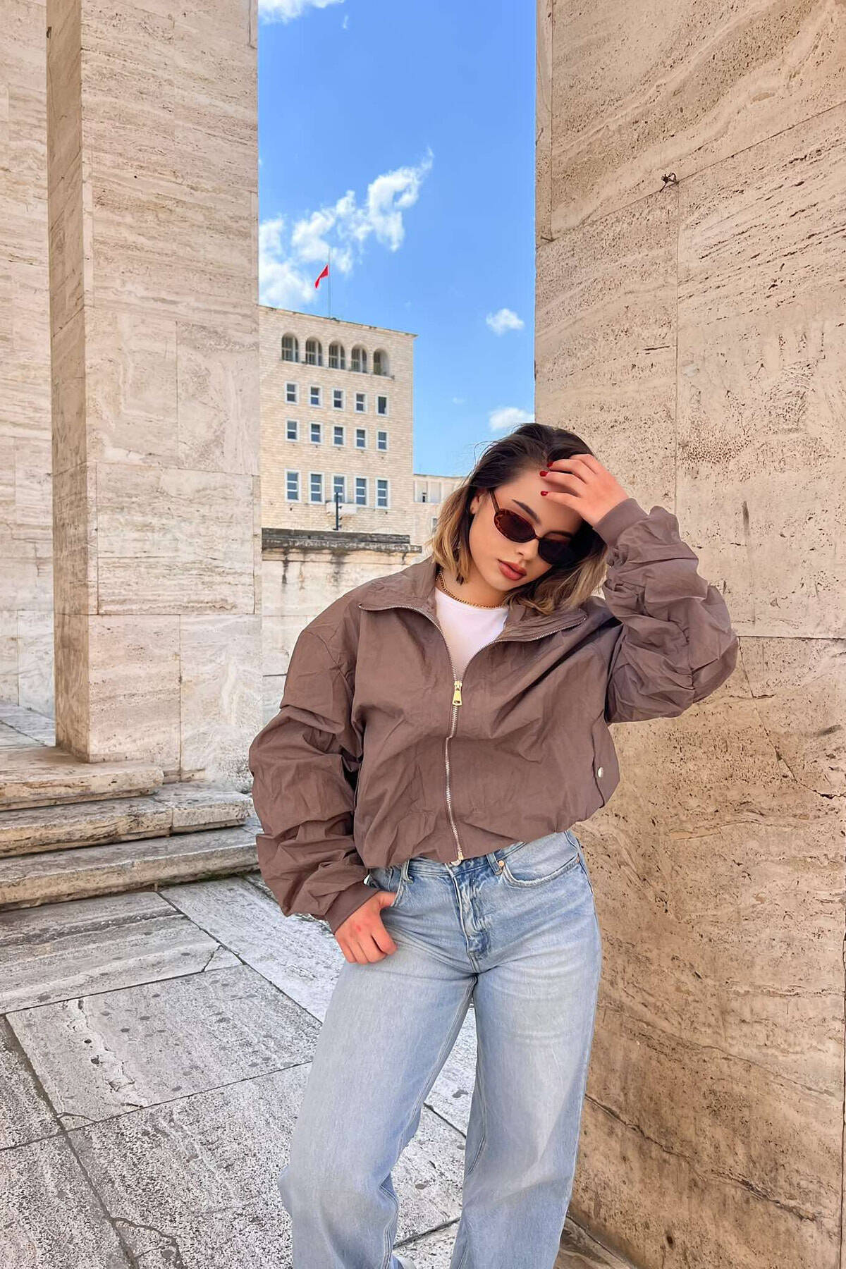 CROPPED SIMPLE WOOL WOMEN JACKET LIGHT BROWN/KAZB