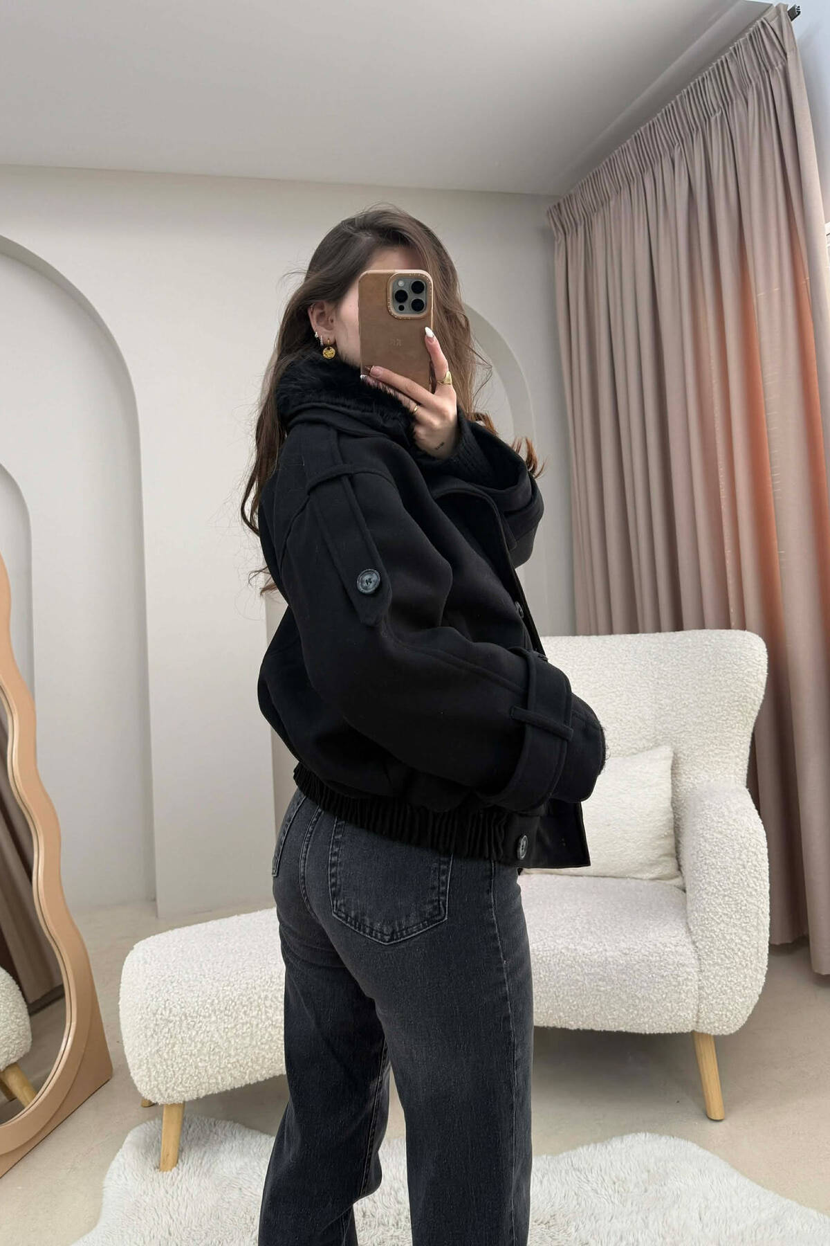 PALLTO NJE NGJYRESHE LEKURE ME KOPSA DHE ME DETAJIN E RRIPIT NE NGJYRE KAFE