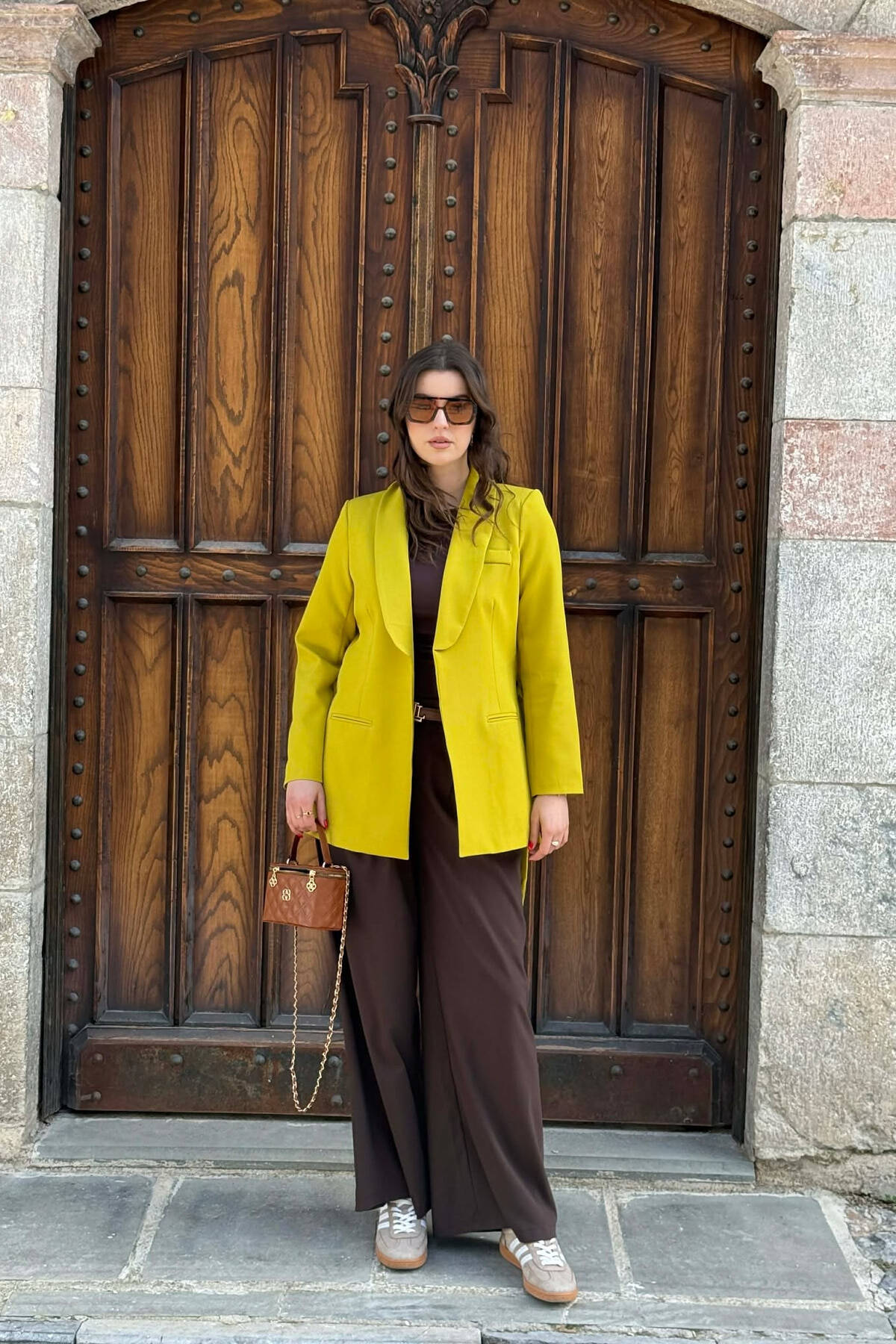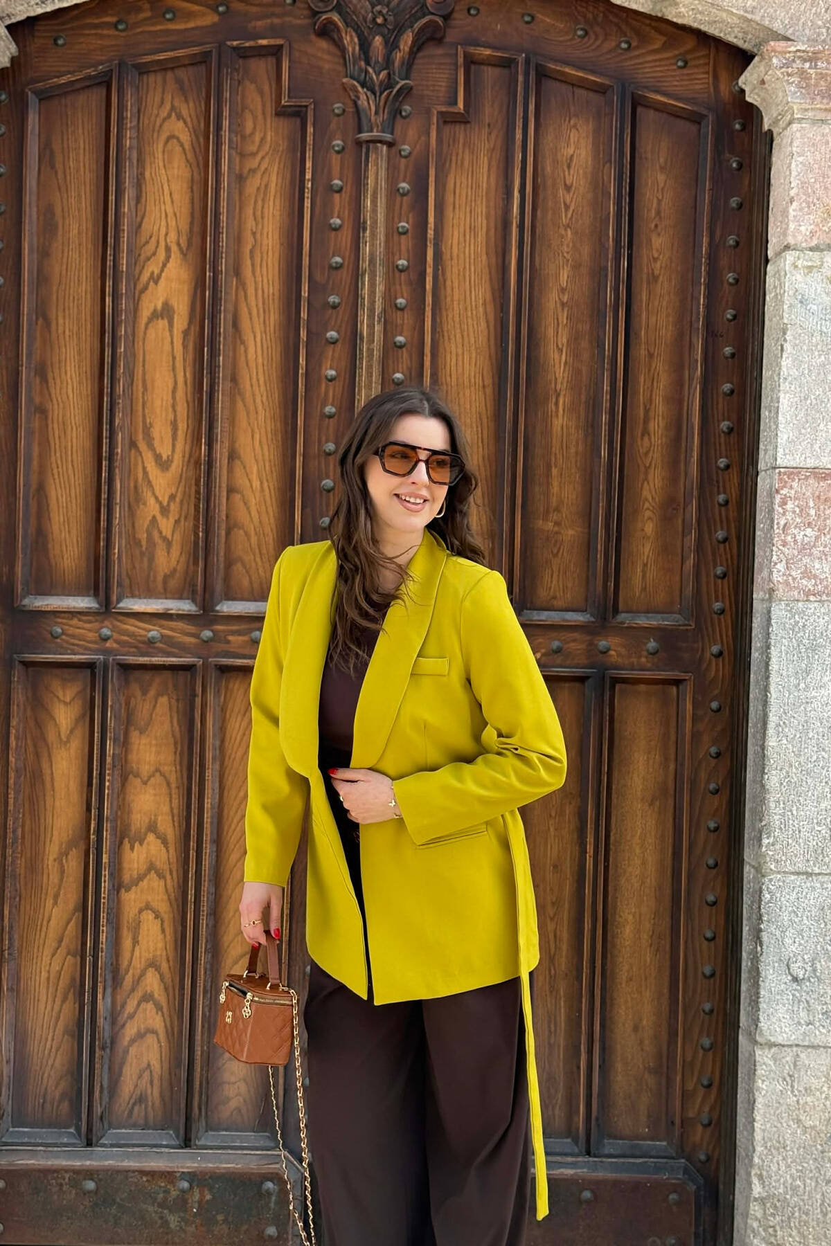 XHAKETË NJË NGJYRËSHE ME DETAJIN E LIDHSES PËR FEMRA NË NGJYRE KAFE