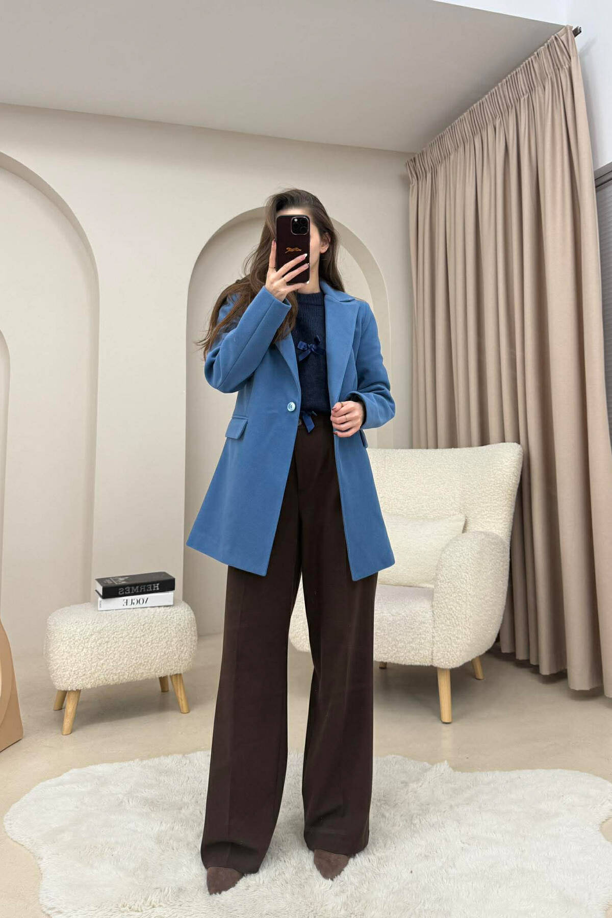 XHAKETË NJË NGJYRËSHE ME DETAJIN E LIDHSES PËR FEMRA NË NGJYRE KAFE