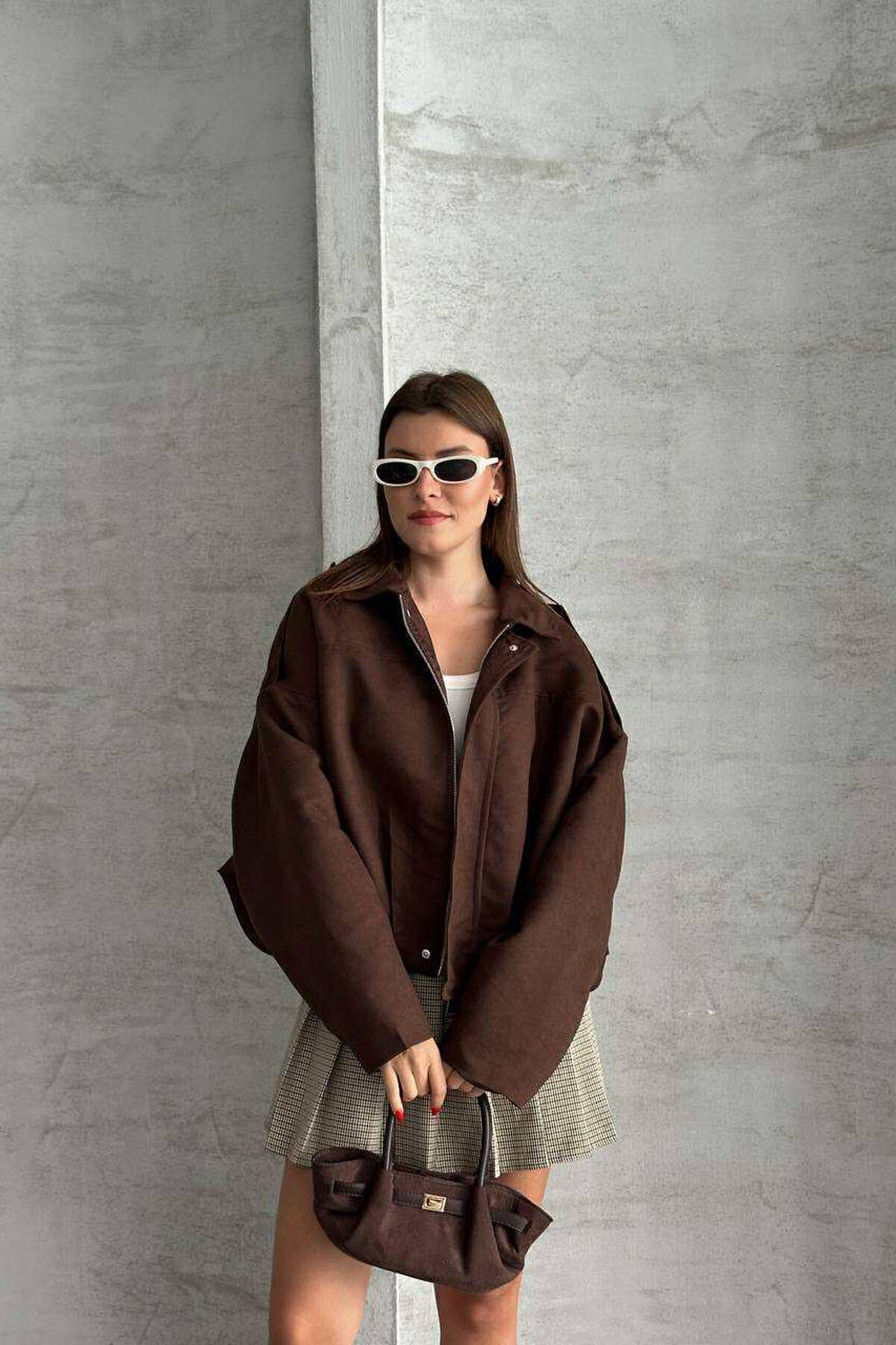 XHAKETË E THJESHTË NJË NGJYRËSHE PËR FEMRA NË NGJYRË KAFE TË ERRËT