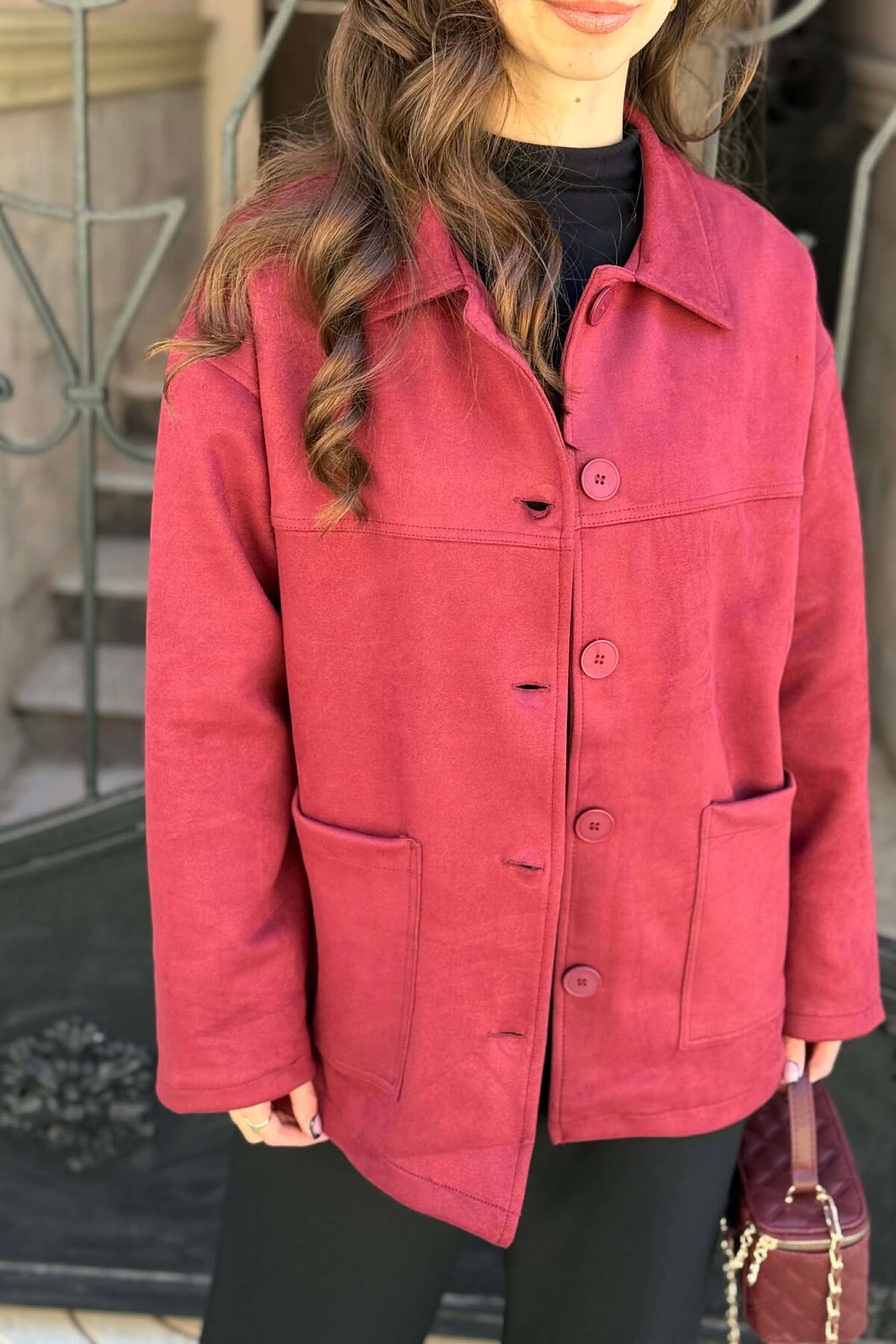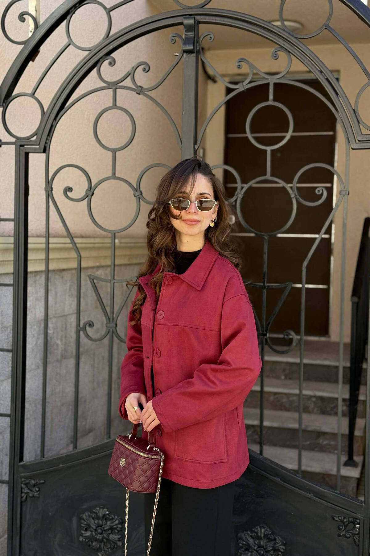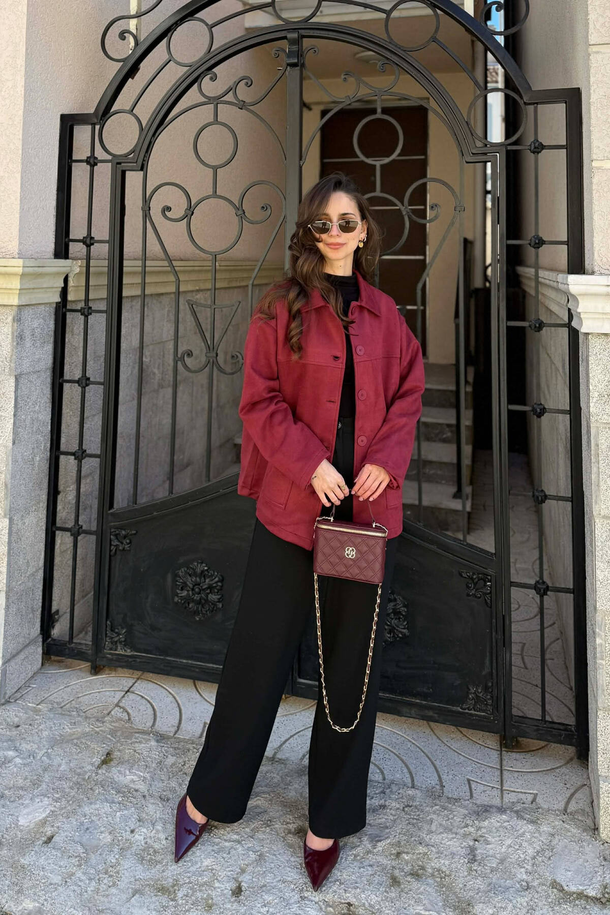 XHAKETË KLASIKE NJË NGJYRËSHE PËR FEMRA NË NGJYRE VISHNJE