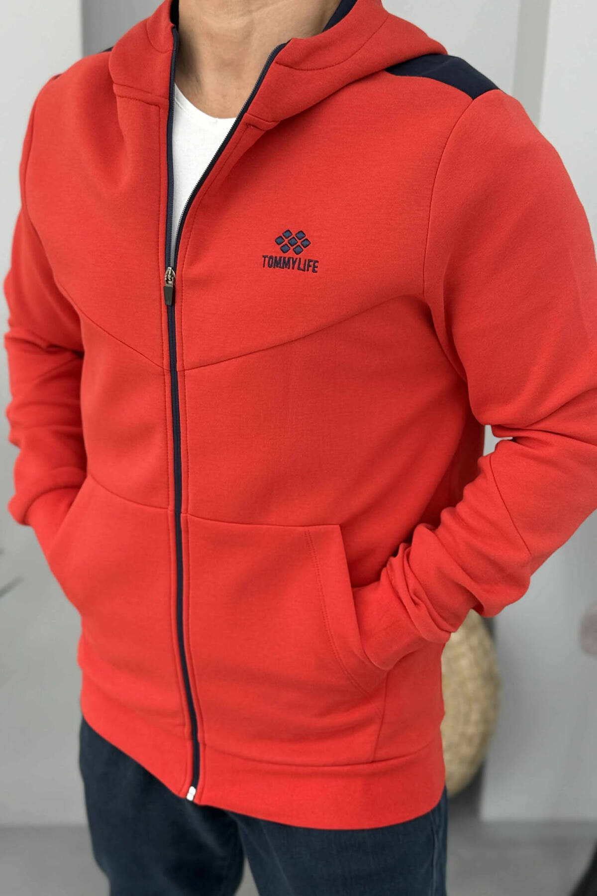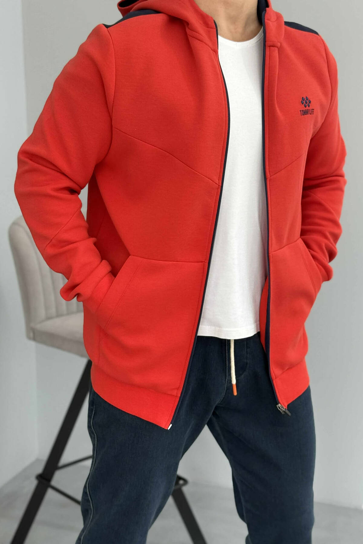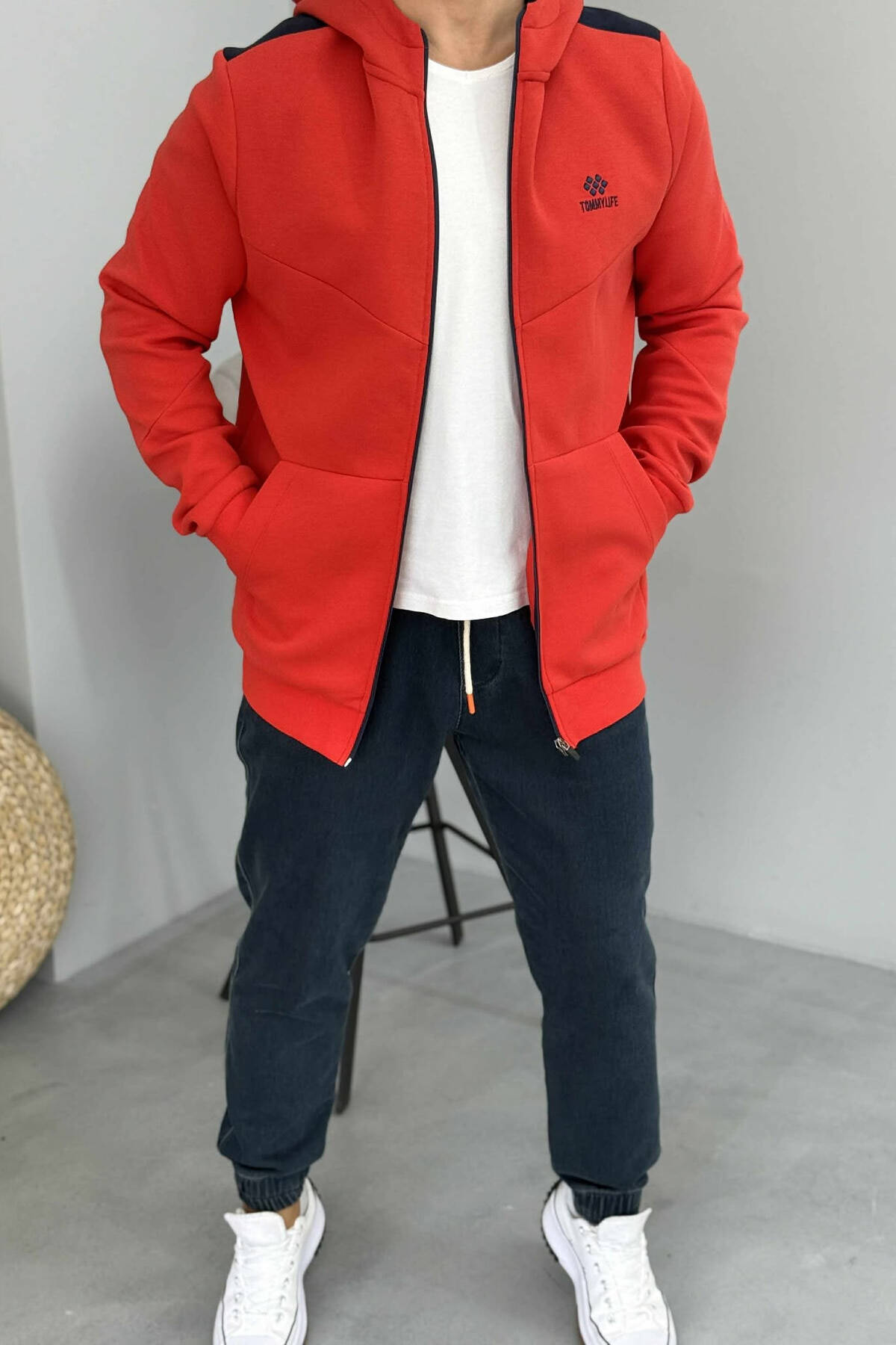 ONE COLOR HOOD ZIPPER MEN COTTON JACKET RED/E KUQE