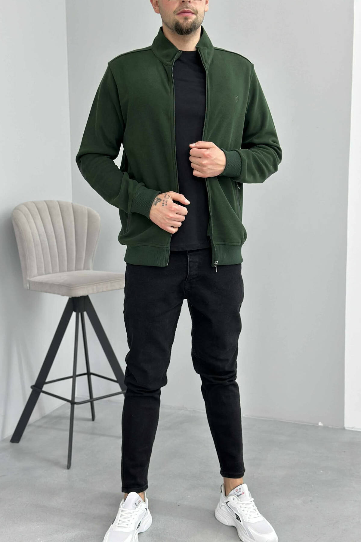 XHAKETË E THJESHTË NJËNGJYRËSHE ME JAKË ME ZINXHIR PËR MESHKUJ NË NGJYRËN JESHILE
