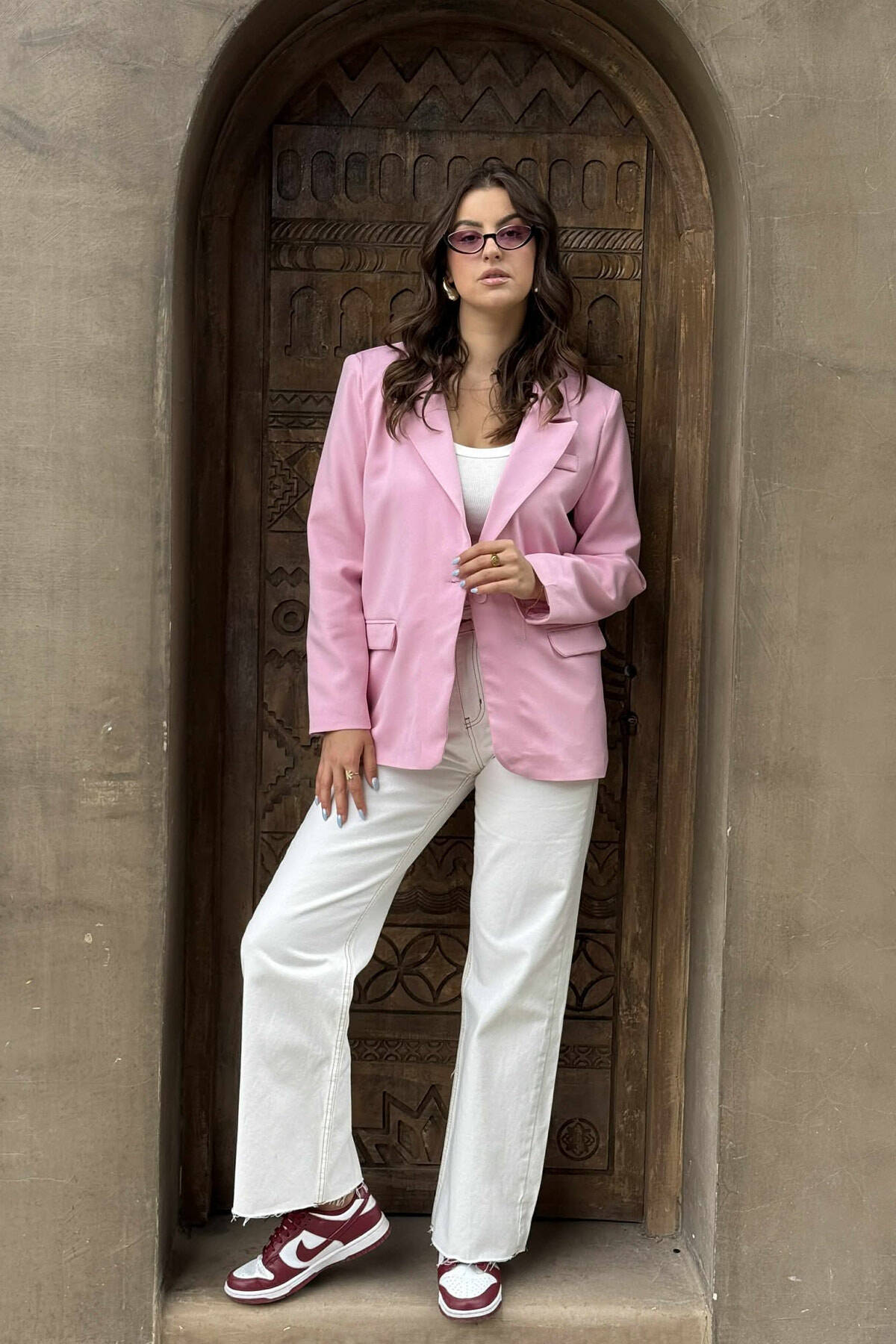 XHAKETË E THJESHTË NJËNGJYRËSHE ME NJË BUTON PËR FEMRA NË NGJYRËN ROZË