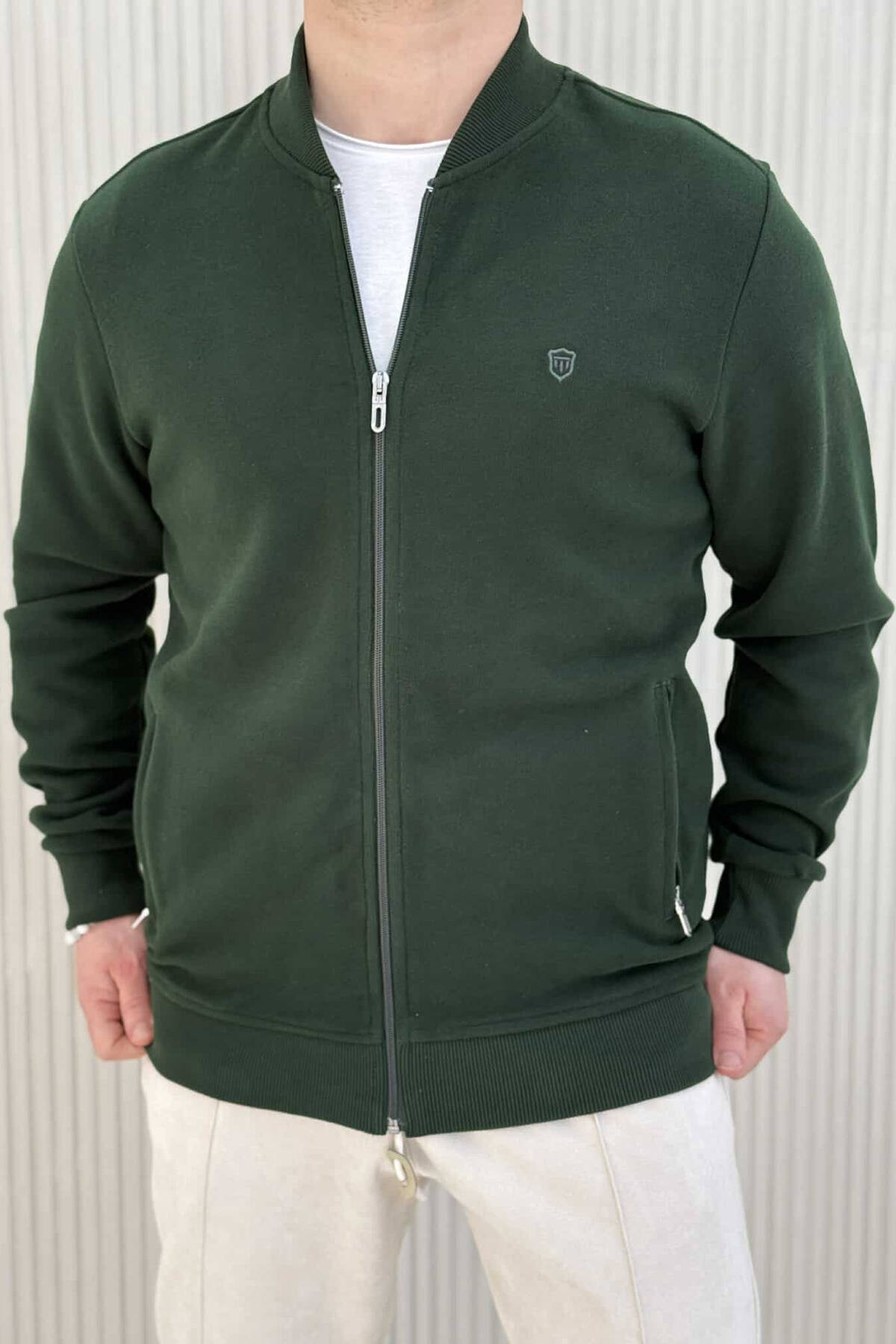 XHAKETË E THJESHTË NJËNGJYRËSHE ME JAKË ME ZINXHIR PËR MESHKUJ NË NGJYRËN JESHILE