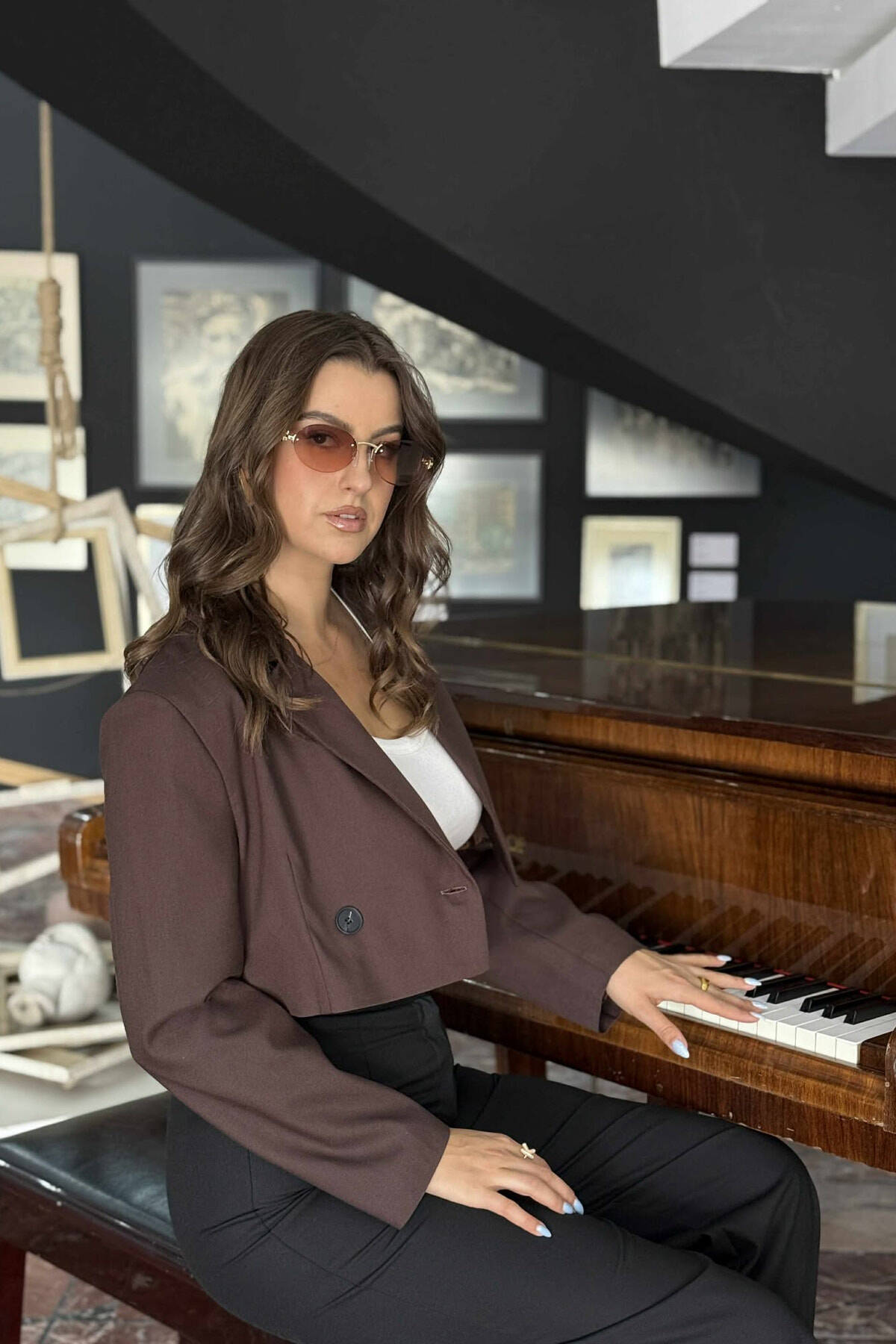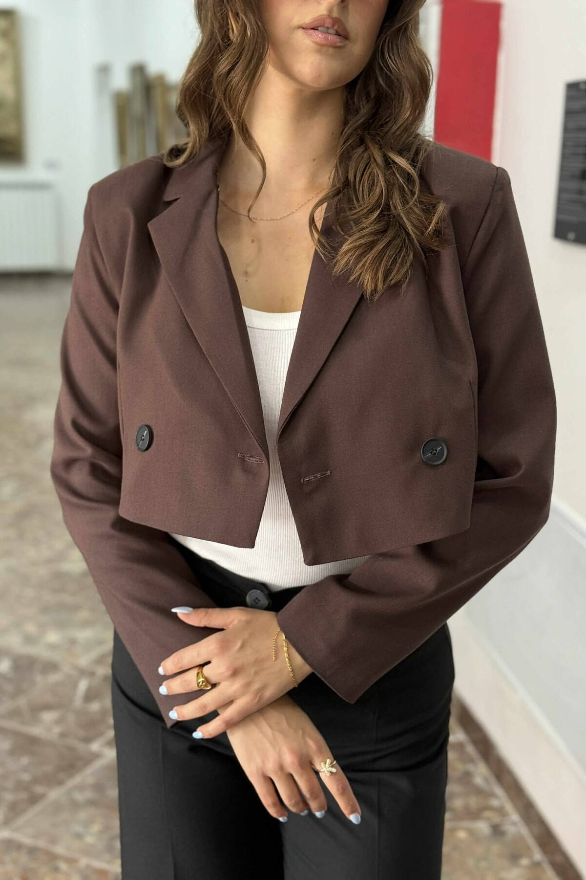 XHAKETË KLASIKE E SHKURTËR NJË NGJYRËSHE PËR FEMRA NË NGJYRËN KAFE