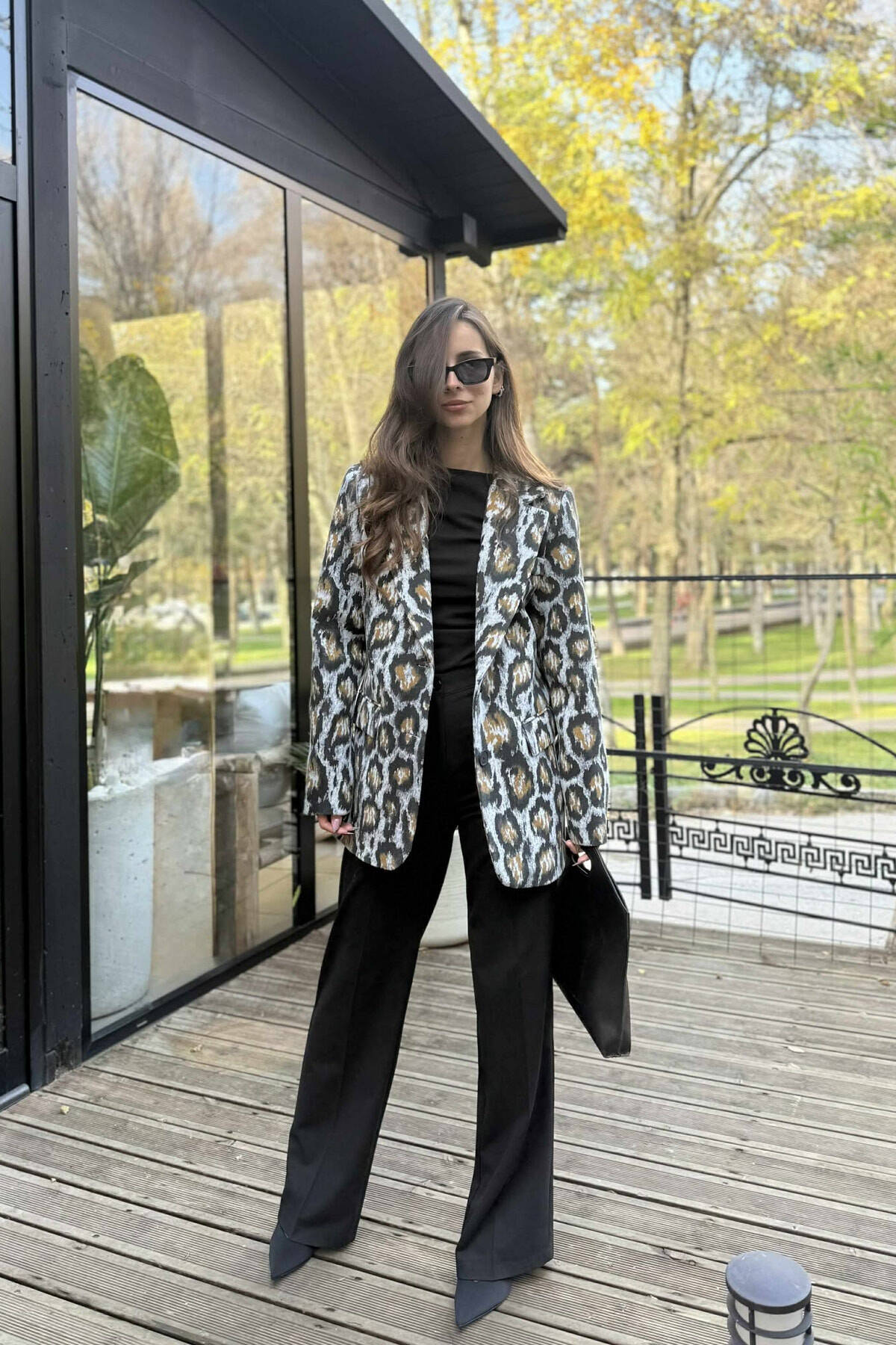 XHAKETE KLASIKE ME DIZAJN LEOPARDI PER FEMRA NE NGJYRE GRI