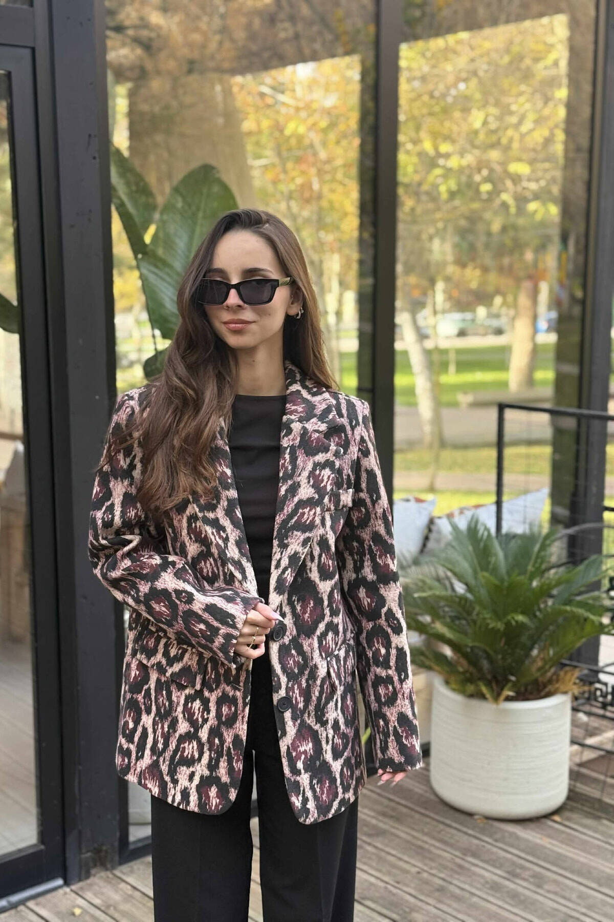 XHAKETE KLASIKE ME DIZAJN LEOPARDI PER FEMRA NE NGJYRE VISHNJE