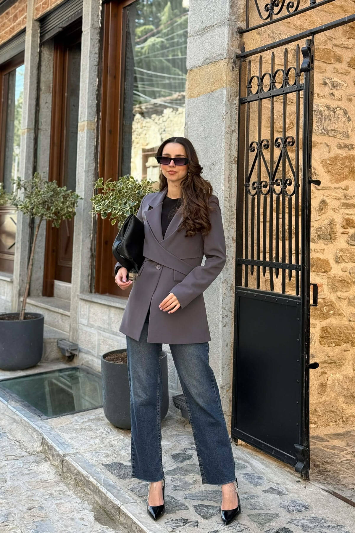 XHAKETË NJË NGJYRËSHE ME DETAJIN E LIDHSES PËR FEMRA NË NGJYRE KAFE