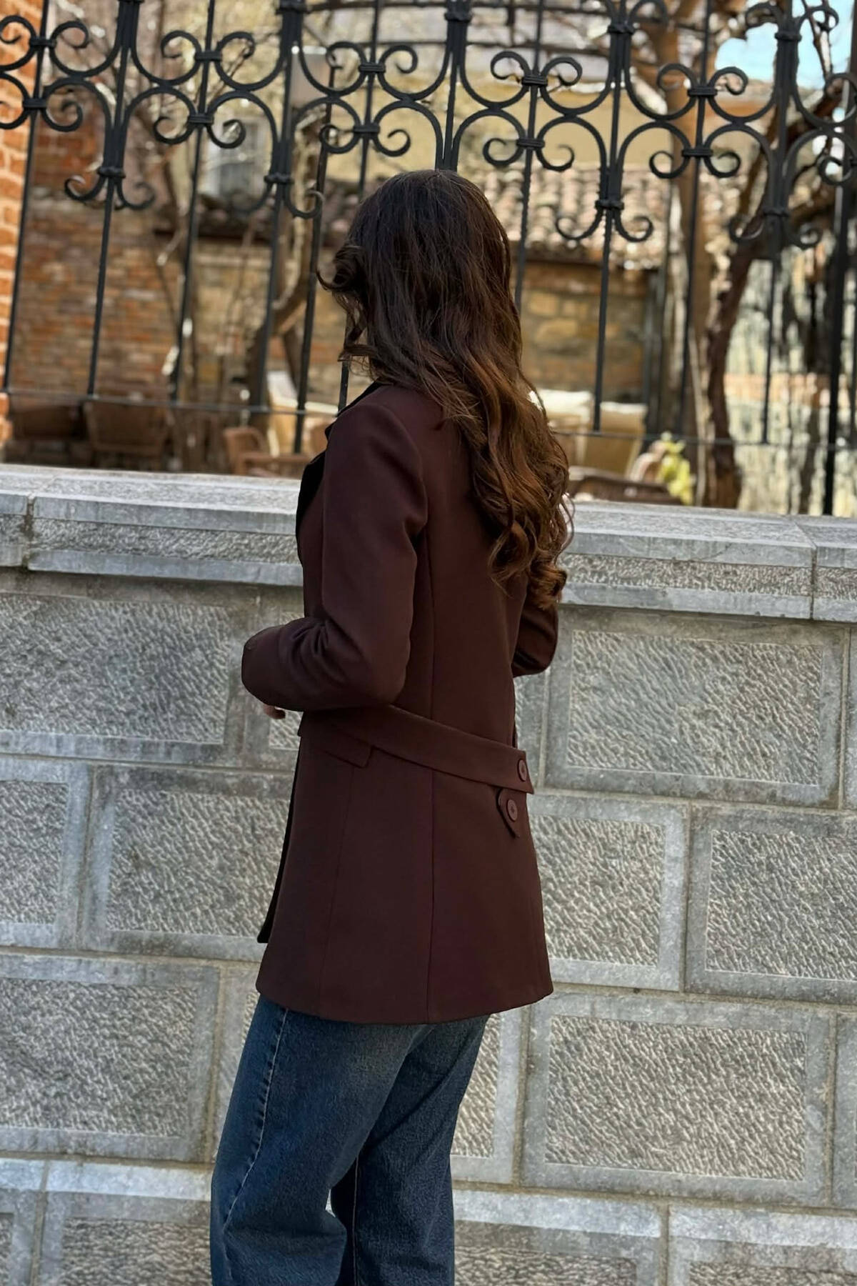 XHAKETË NJË NGJYRËSHE ME DETAJIN E LIDHSES PËR FEMRA NË NGJYRE KAFE
