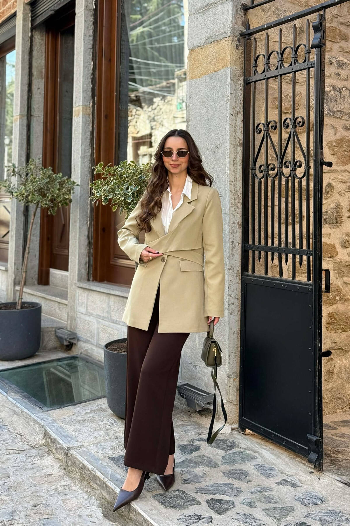 XHAKETË NJË NGJYRËSHE ME DETAJIN E LIDHSES PËR FEMRA NË NGJYRE KAFE
