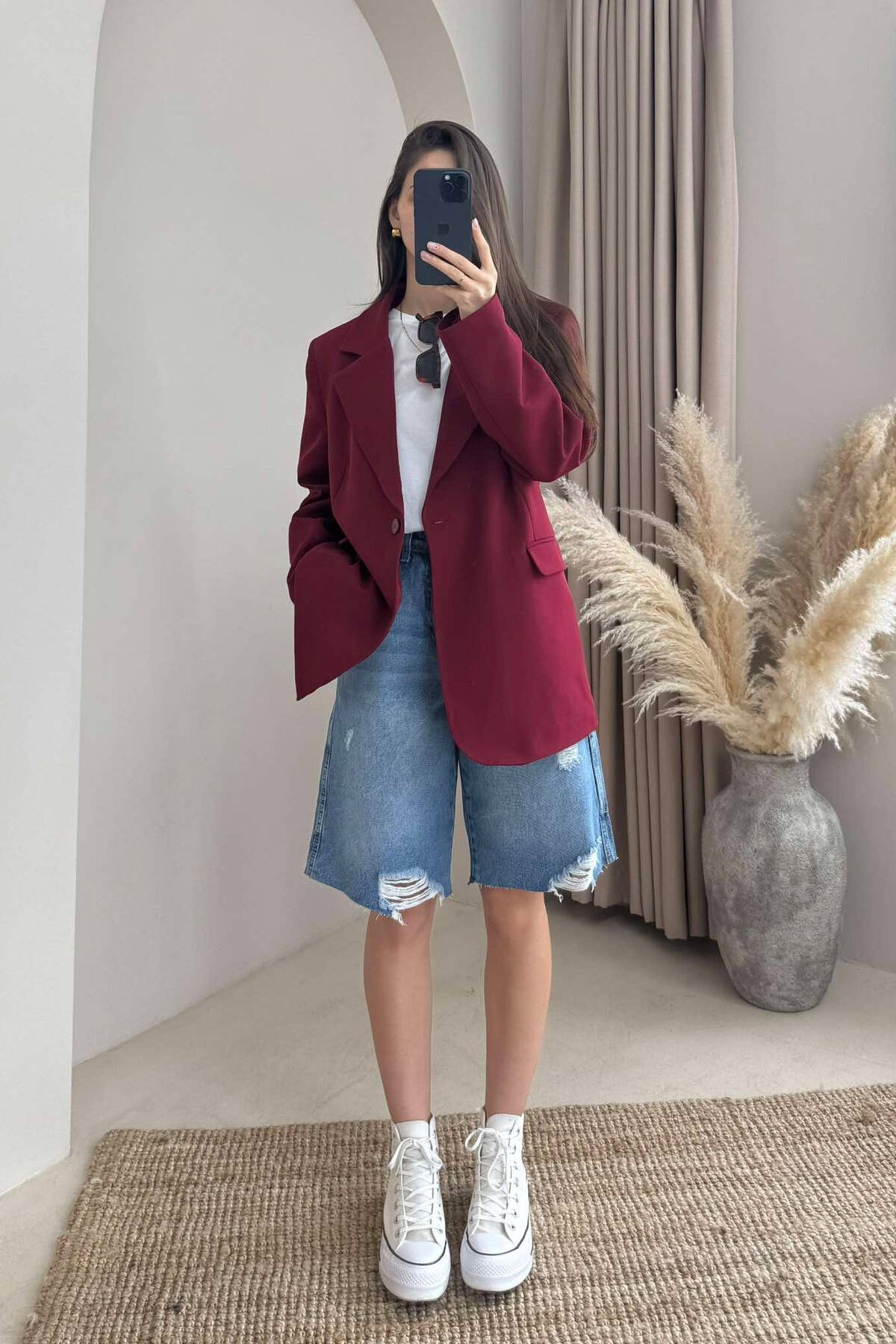XHAKETË KLASIKE NJË NGJYRËSHE PËR FEMRA NË NGJYRE VISHNJE