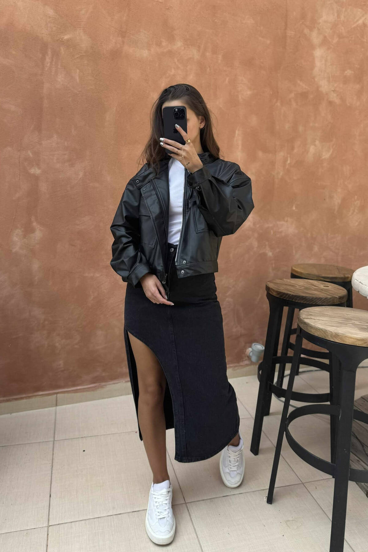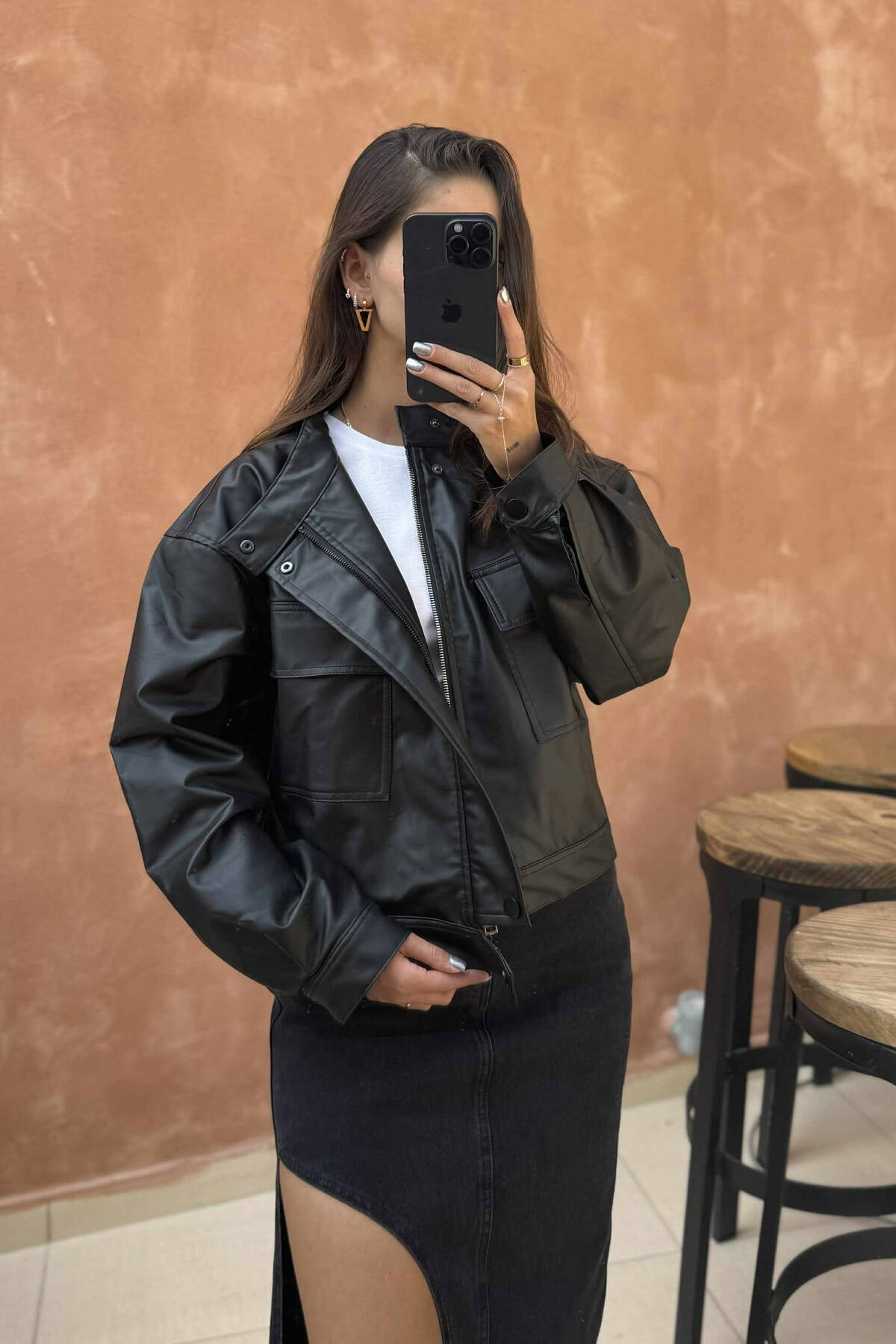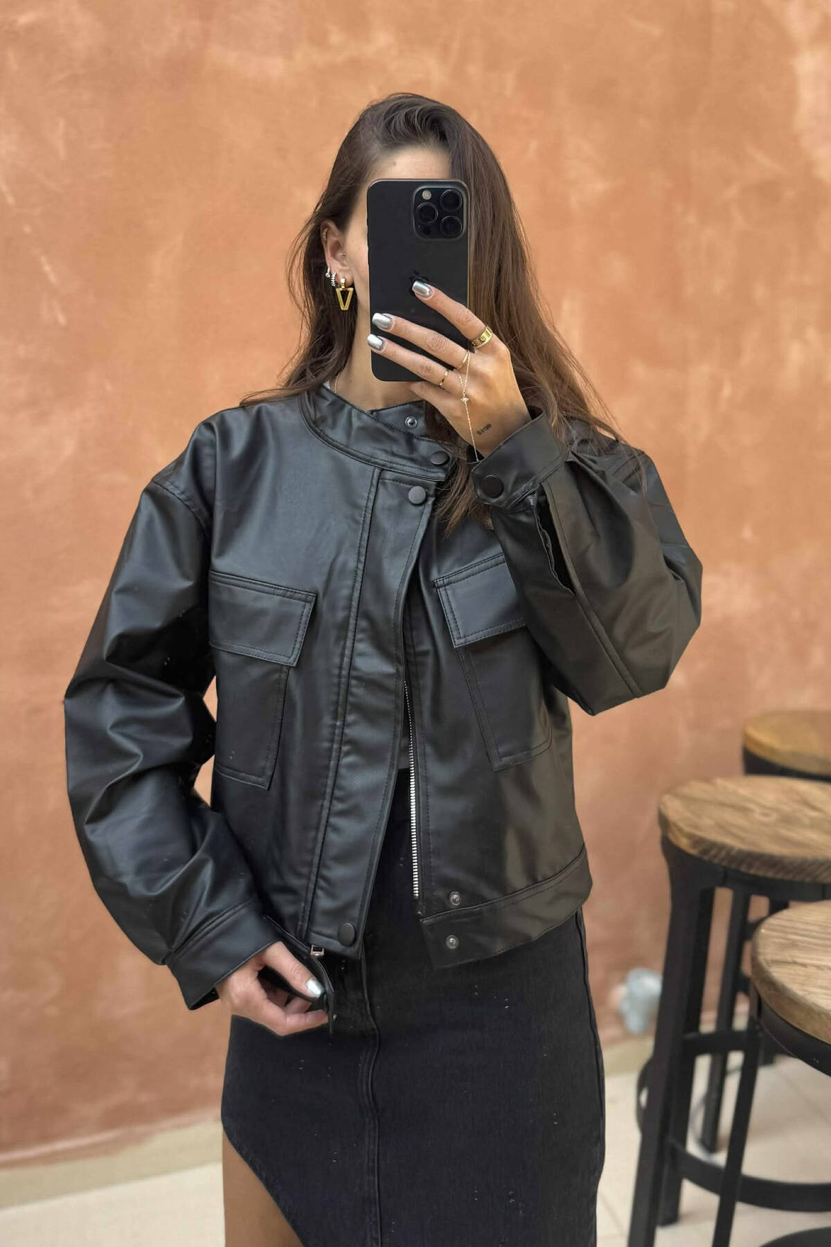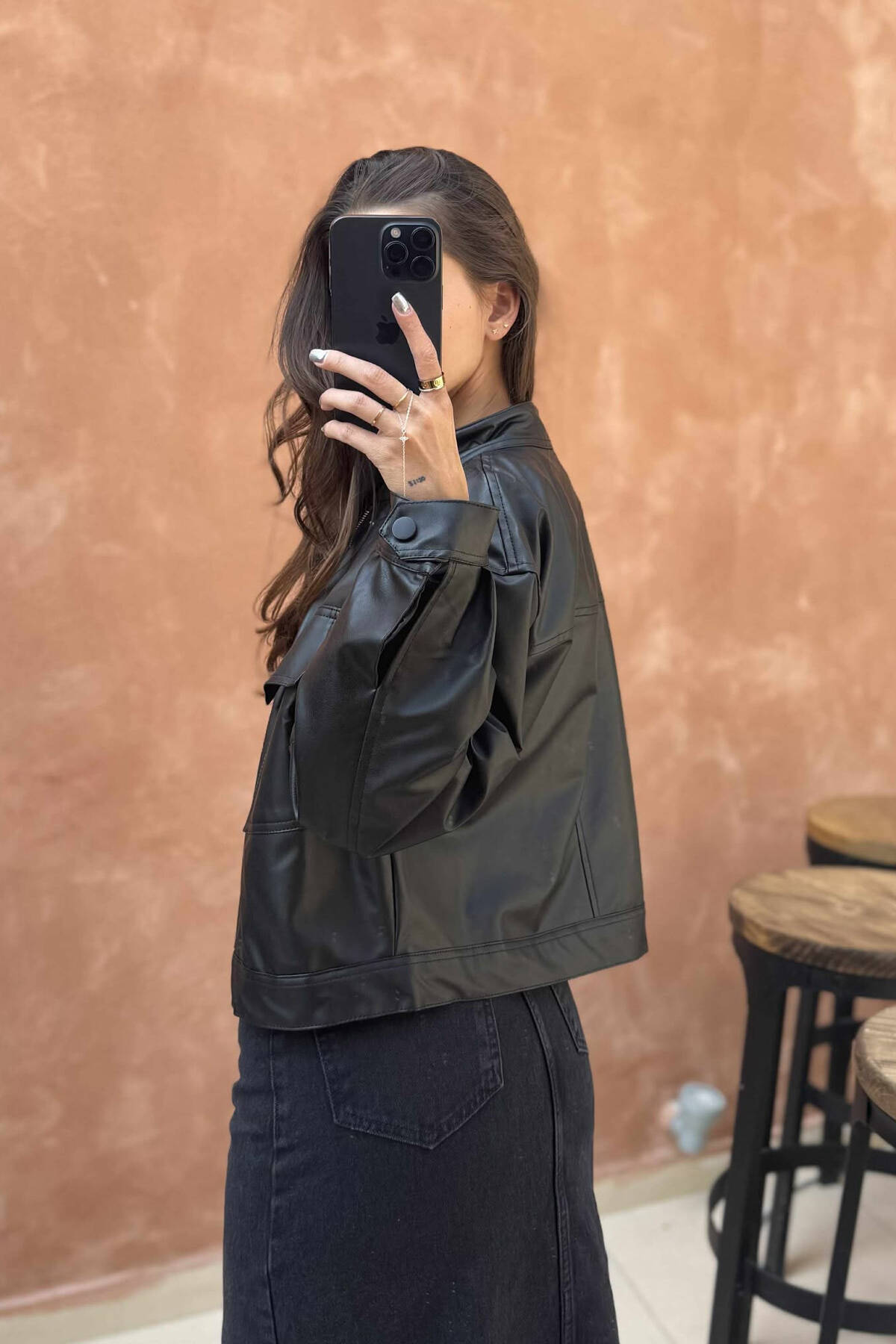 XHAKETË LËKURE E SHKURTËR PËR FEMRA NË NGJYRËN E ZEZË