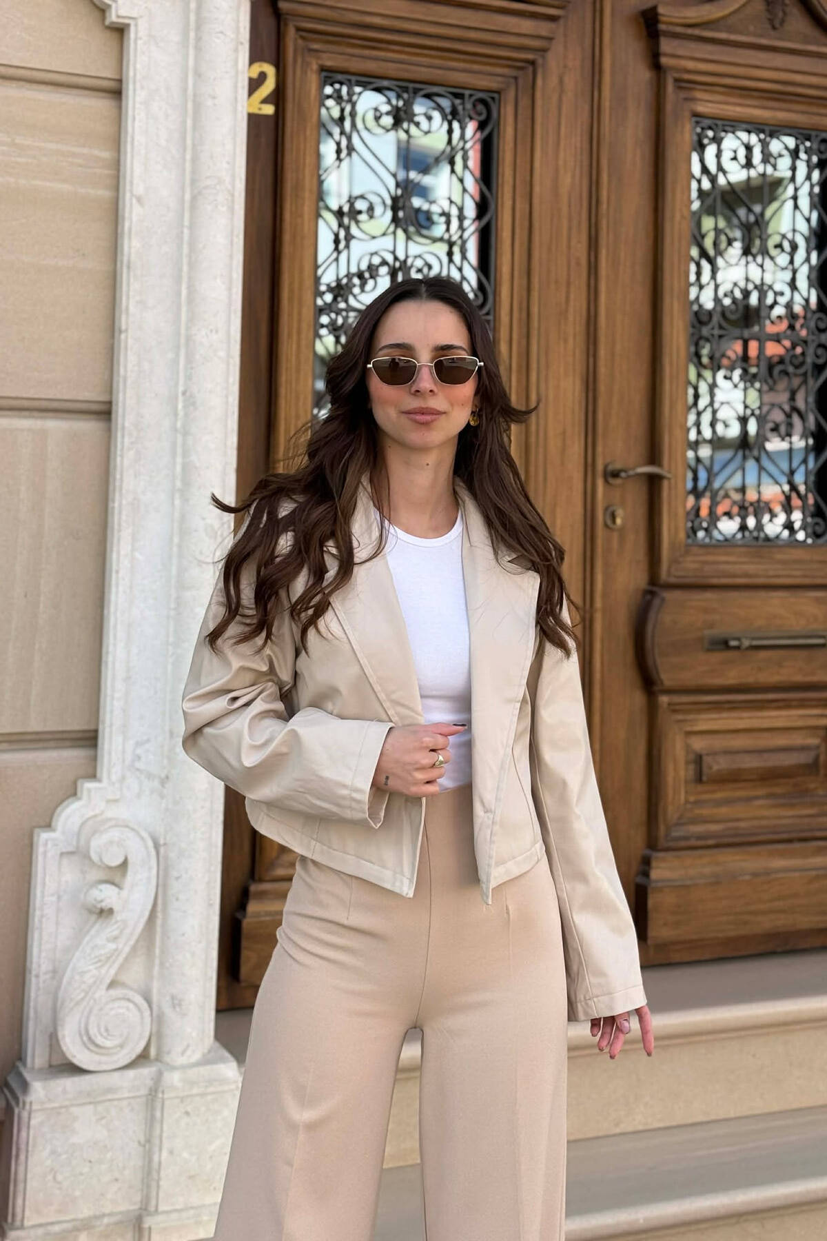 XHAKETË KLASIKE NJË NGJYRËSHE PËR FEMRA NË NGJYRE ULLIRI