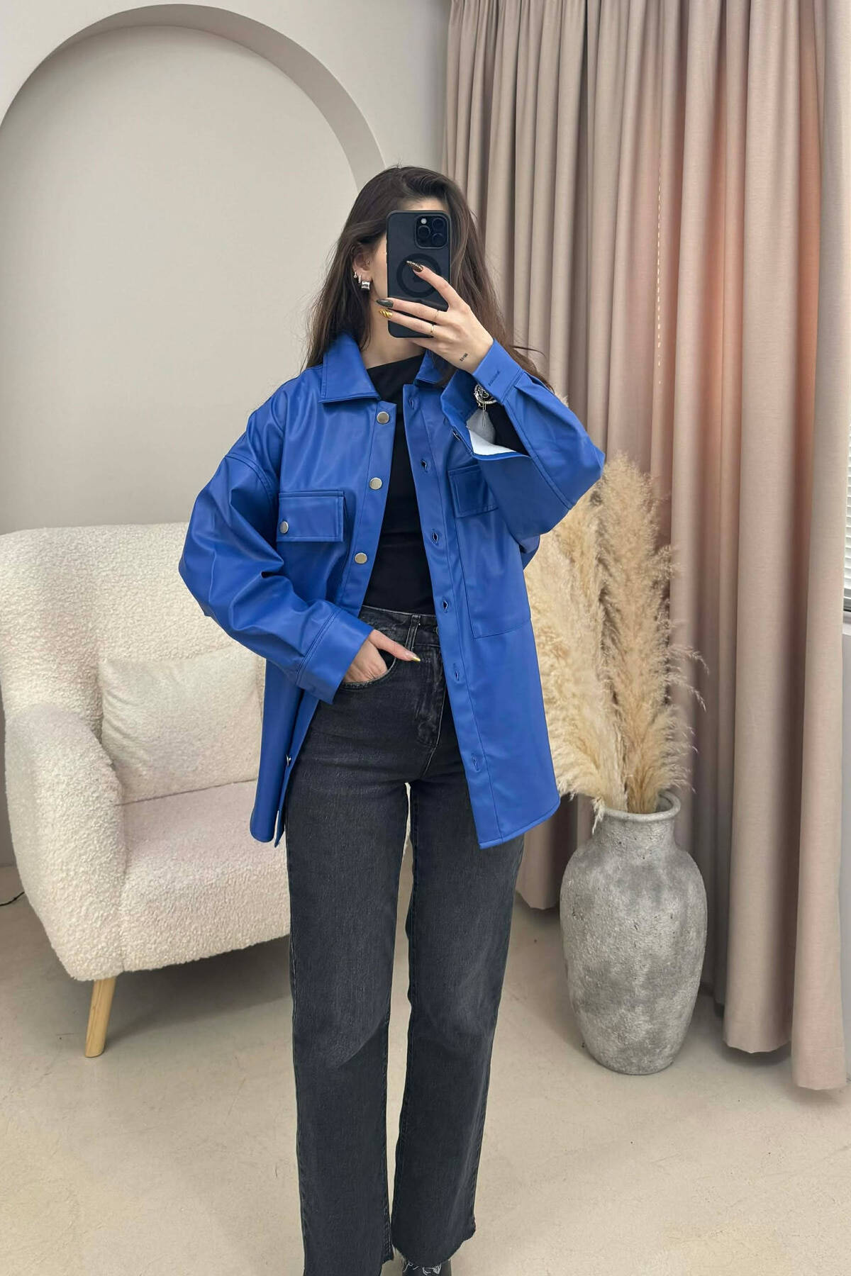XHAKETE LEKURE ME BUTONA PER FEMRA NE NGJYRE BLU