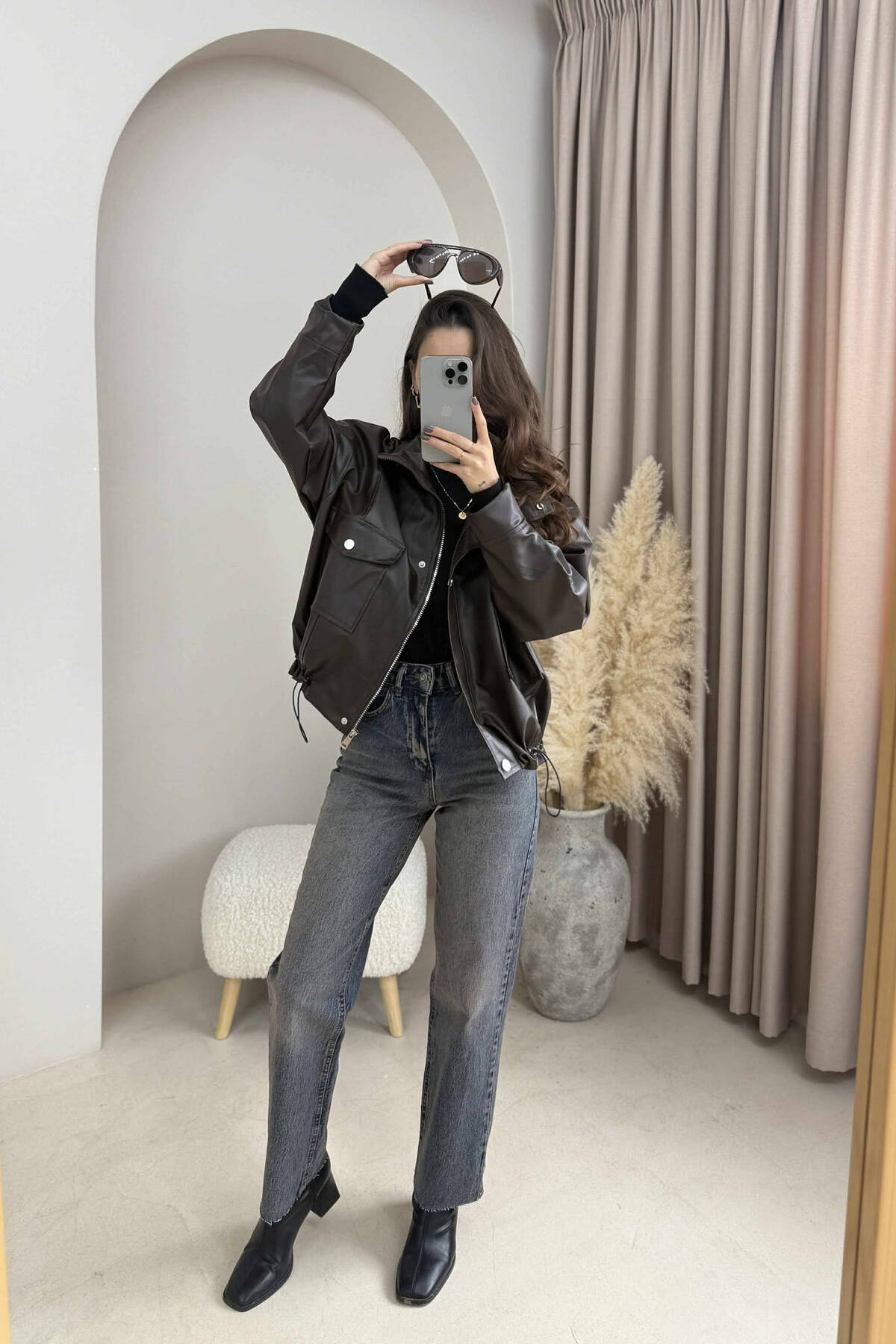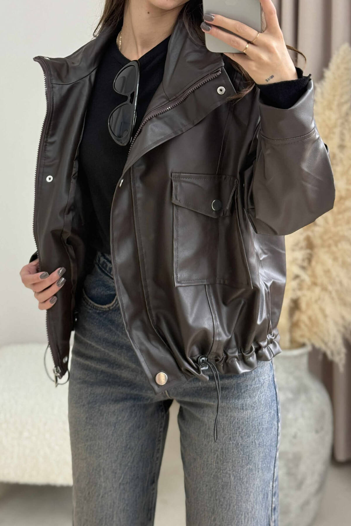 XHAKETË LËKURE ME KOPSA PËR FEMRA NË NGJYRË KAFE