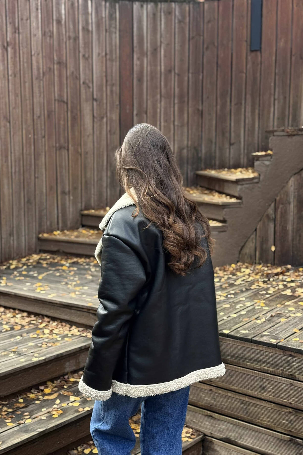 FUR DETAIL DENIM WOMEN JACKET BLACK-BROWN/ZEKA