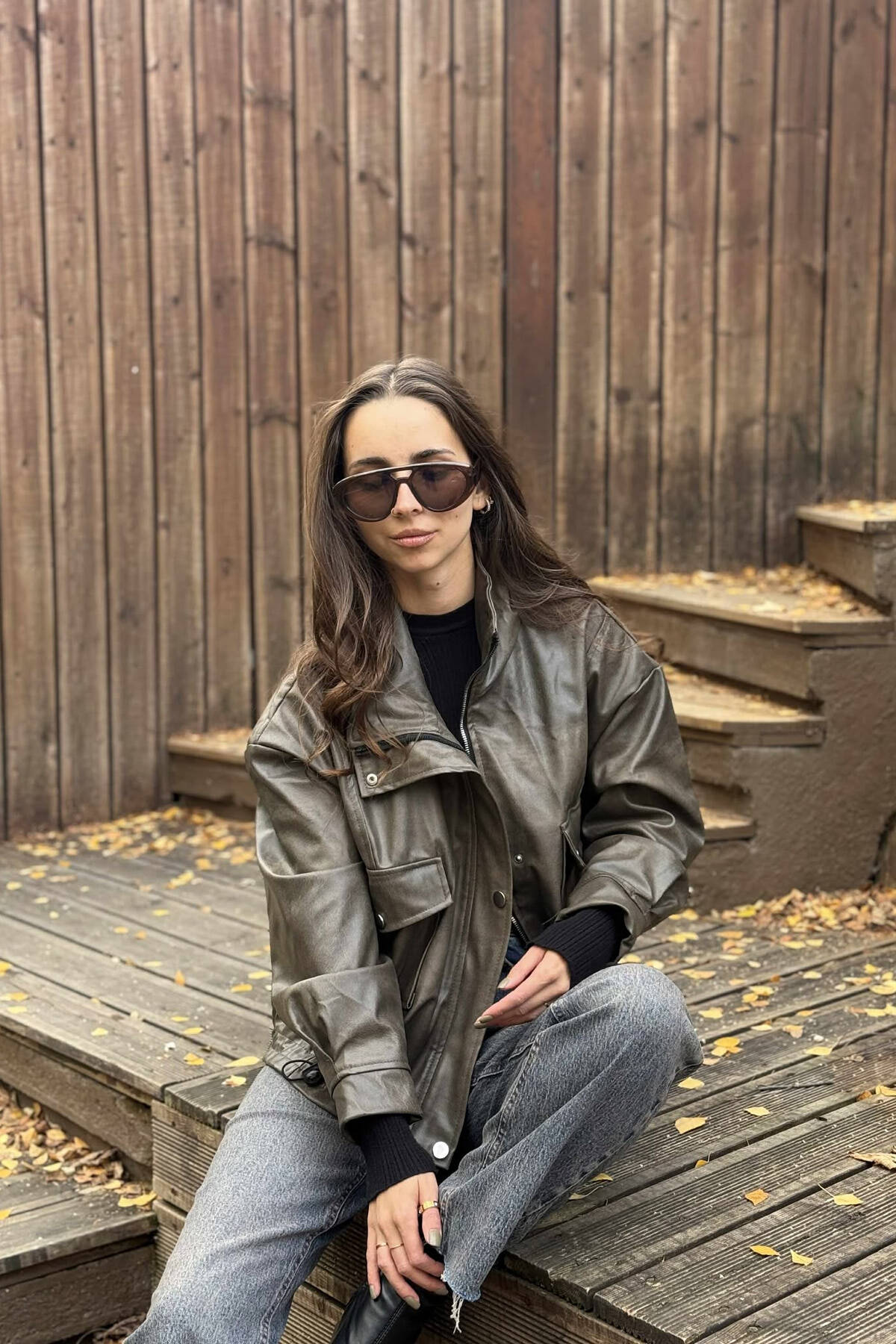 XHAKETË LËKURE NJË NGJYRËSHE ME BUTONA DHE ZINXHIR PËR FEMRA NË NGJYRË KAFE TË ZBARDHUR