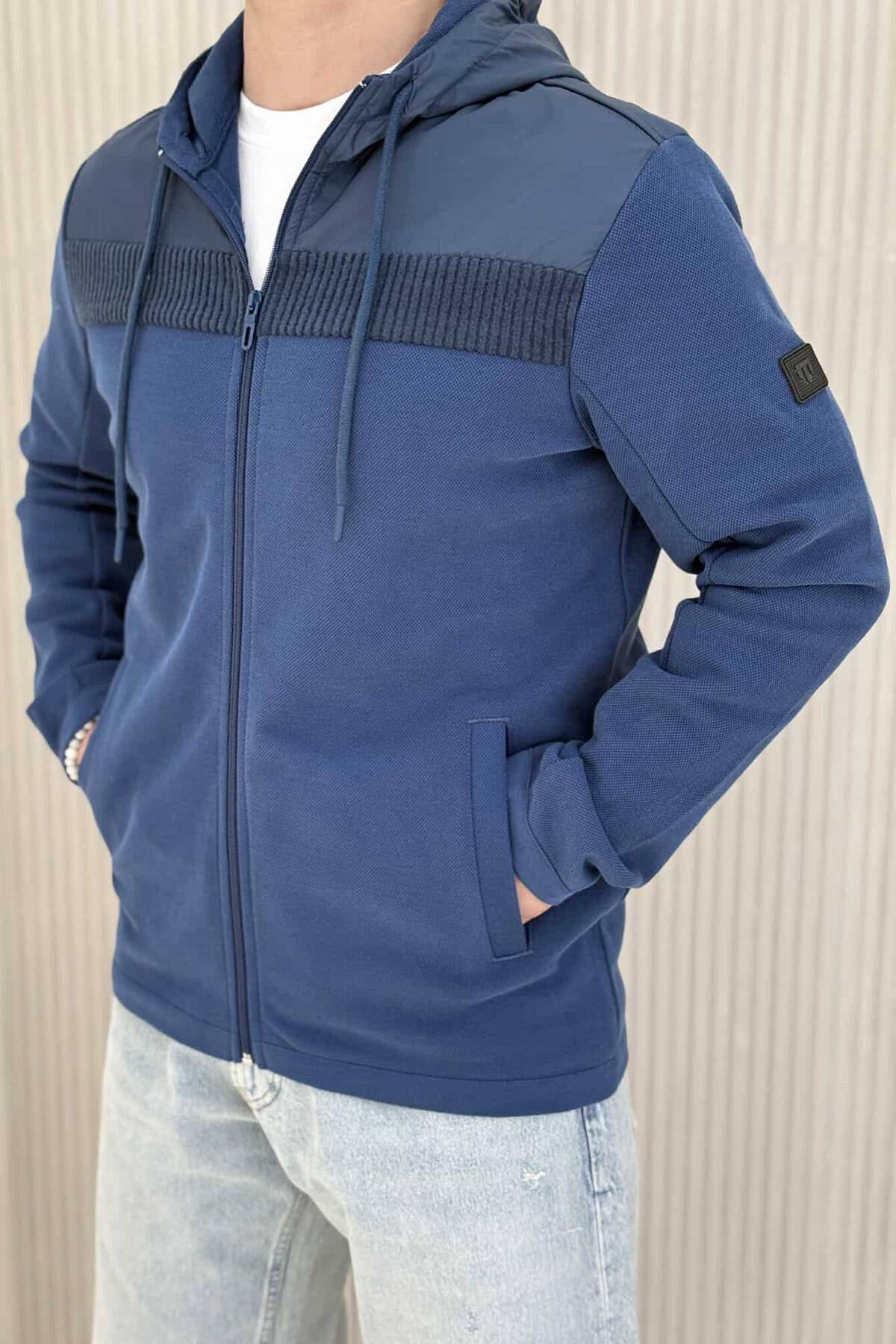 XHAKETË ME KAPUC PËR MESHKUJ NË NGJYRËN BLU