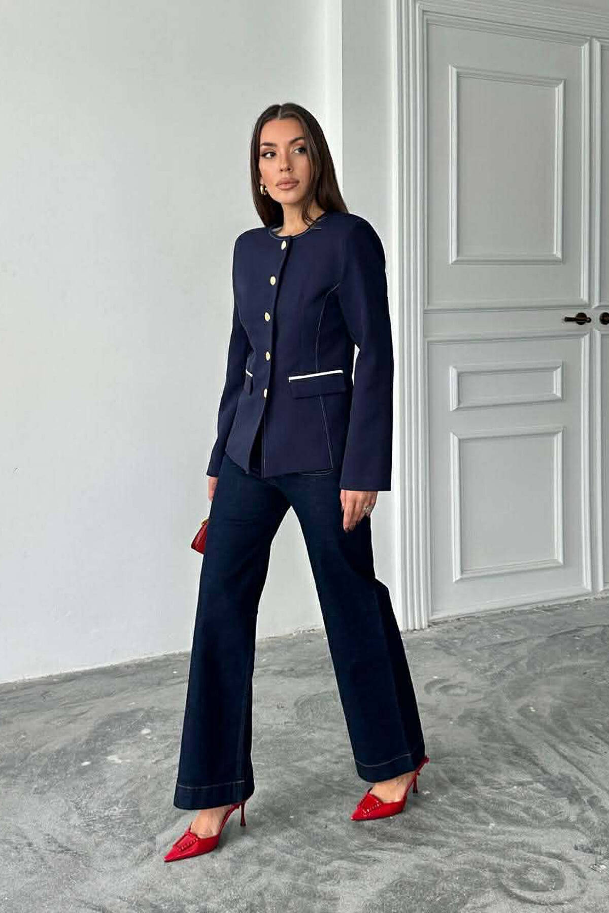 XHAKETË KLASIKE NJË NGJYRËSHE PËR FEMRA NË NGJYRE BLU
