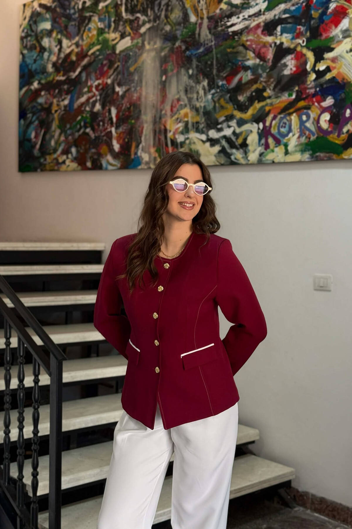 XHAKETË KLASIKE NJË NGJYRËSHE PËR FEMRA NË NGJYRE VISHNJE