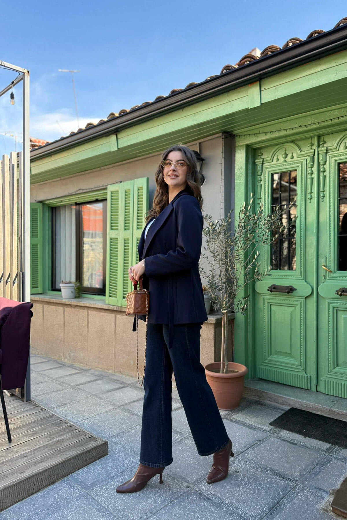 XHAKETË KLASIKE NJË NGJYRËSHE PËR FEMRA NË NGJYRE ULLIRI