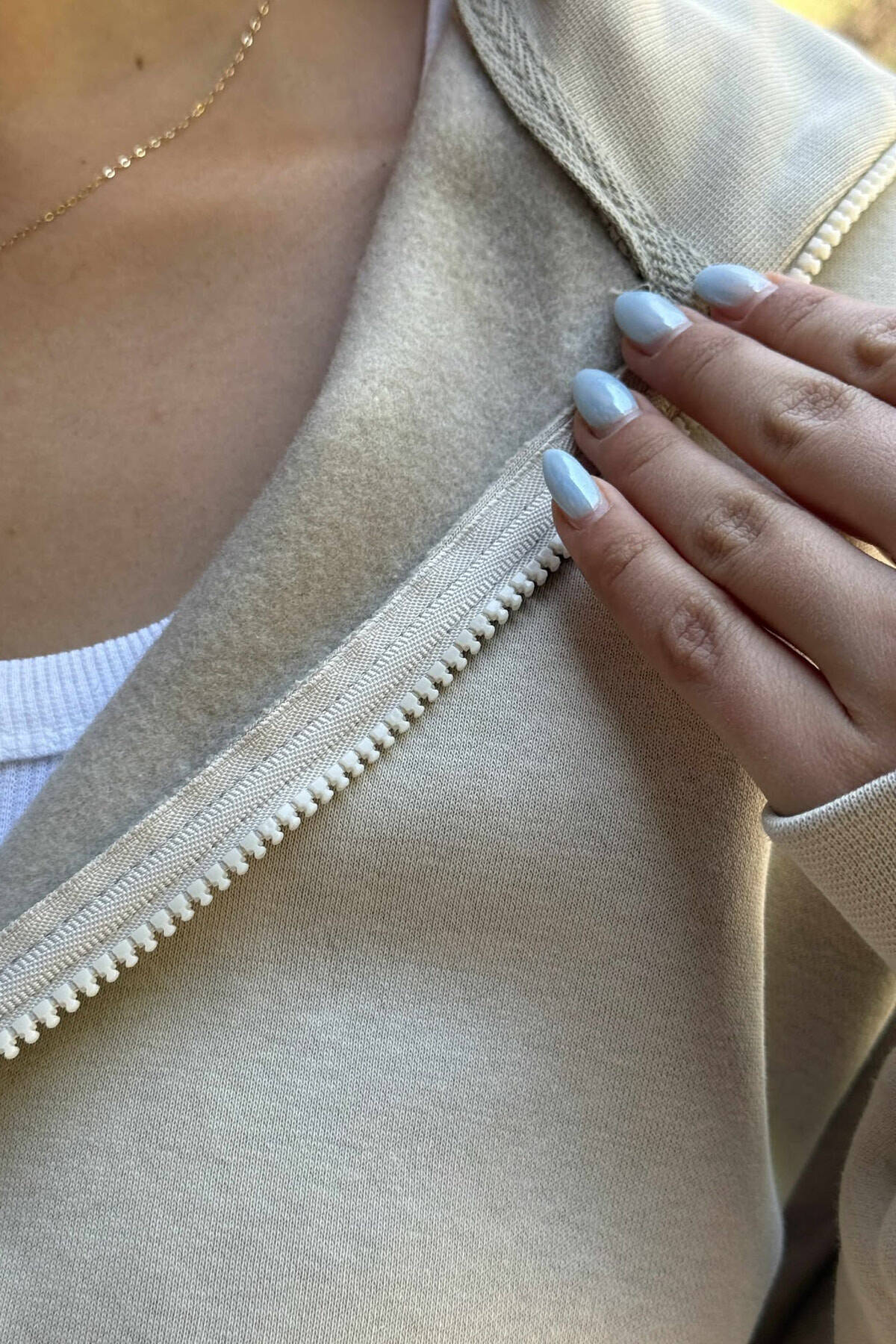 HOODIE ME ZINXHIR DHE ME PUSH NJË NGJYRËSHE PËR FEMRA NË NGJYRËN KREM