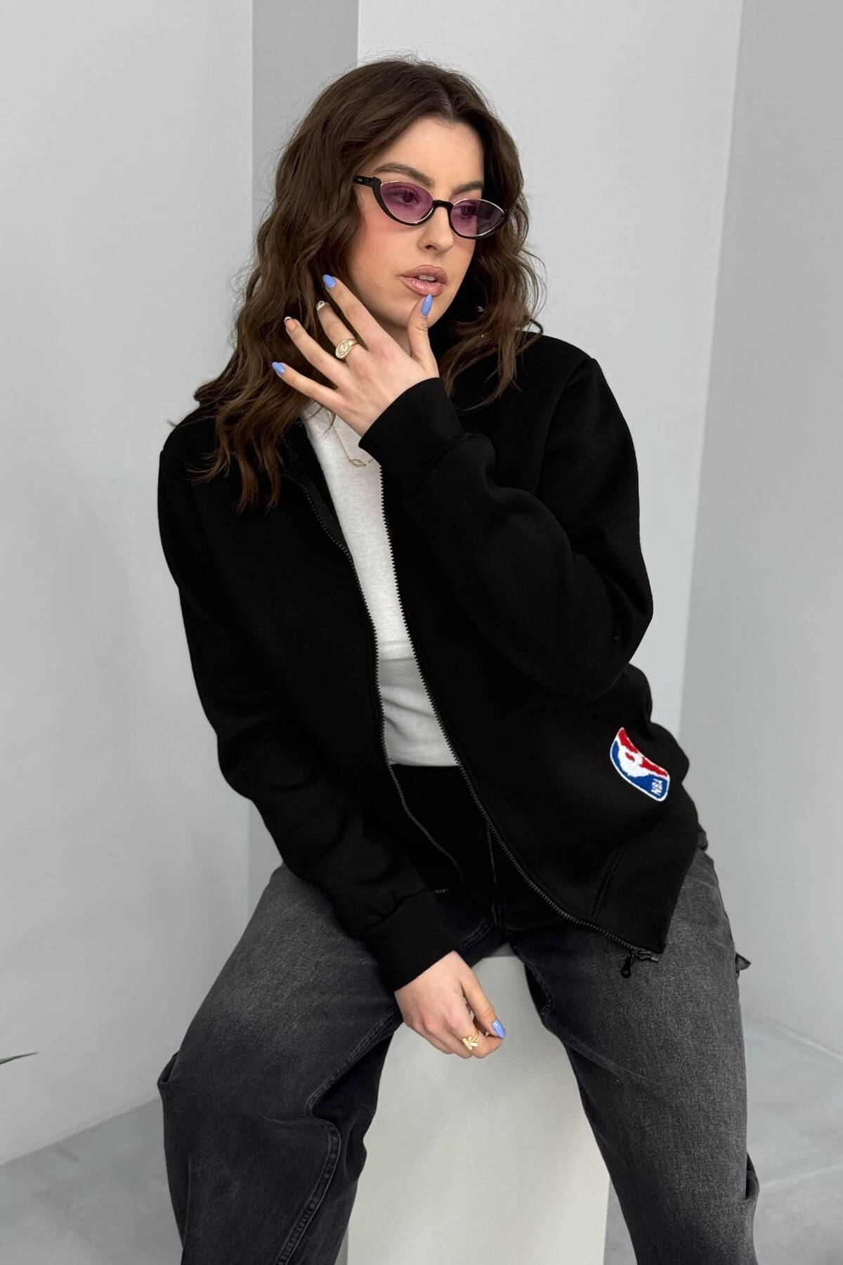 XHAKETË NJË NGJYRËSHE ME KAPUC PËR FEMRA NË NGJYRË GRI
