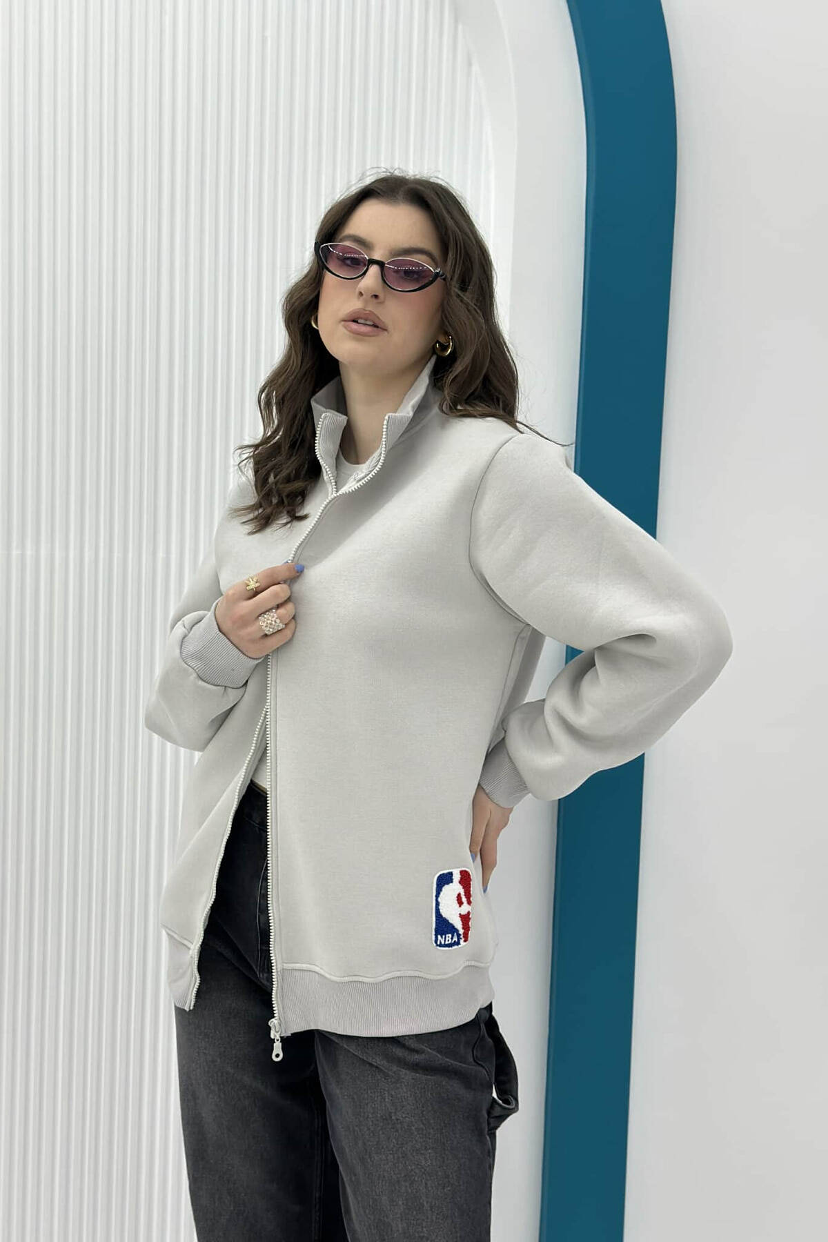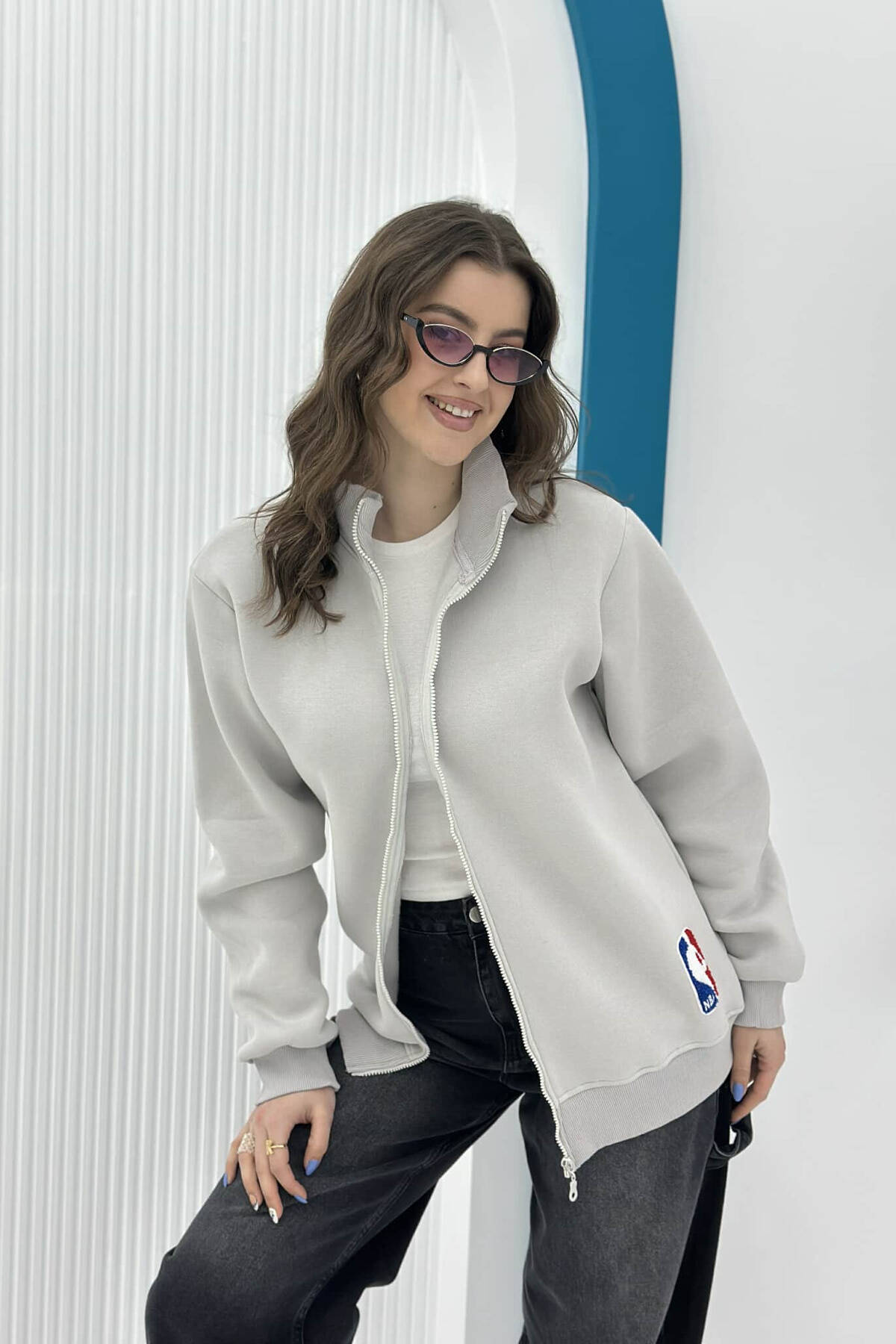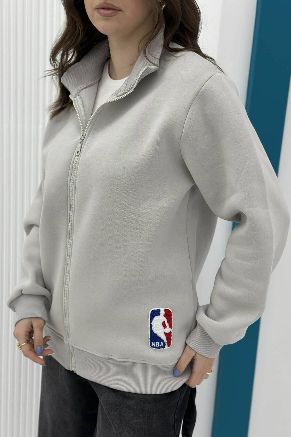 XHAKETË ME PUSH PËR FEMRA NË NGJYRËN GRI E ZBARDHUR