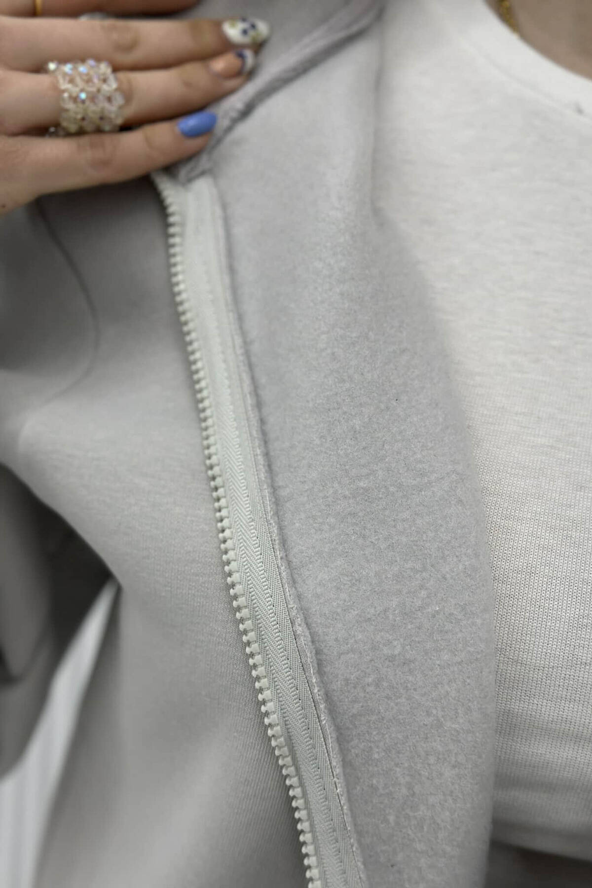 XHAKETË NJË NGJYRËSHE ME KAPUC PËR FEMRA NË NGJYRË GRI