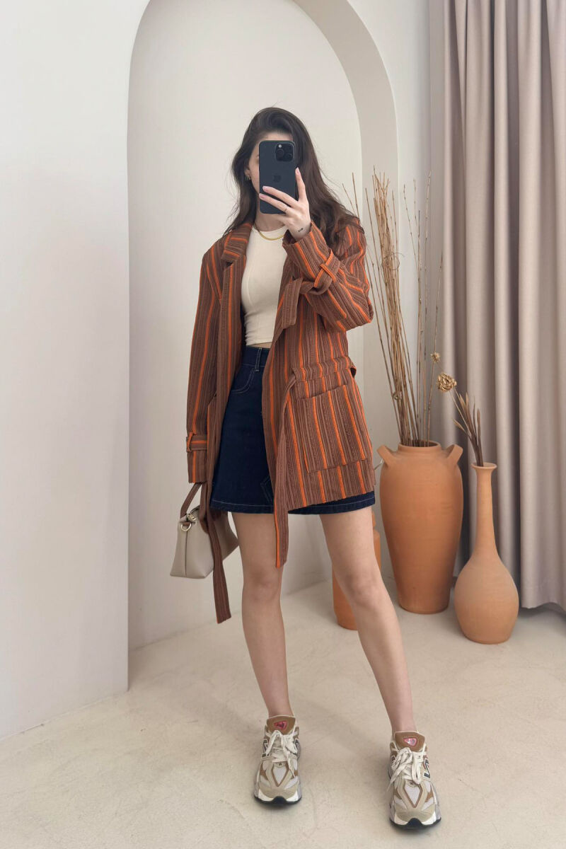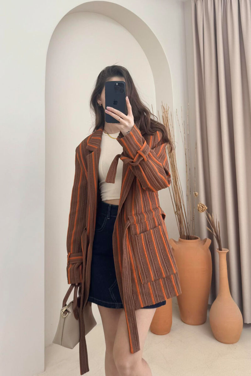 XHAKETË ME VIJA PËR FEMRA NË NGJYRËN KAFE