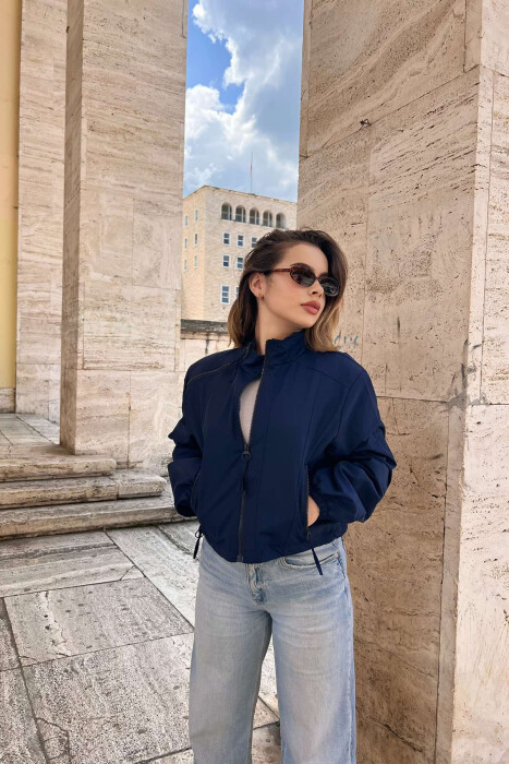 BLUZË PËR FEMRA ME JAKË TË RRUMBULLAKËT NË NGJYRË BLU E ERRËT