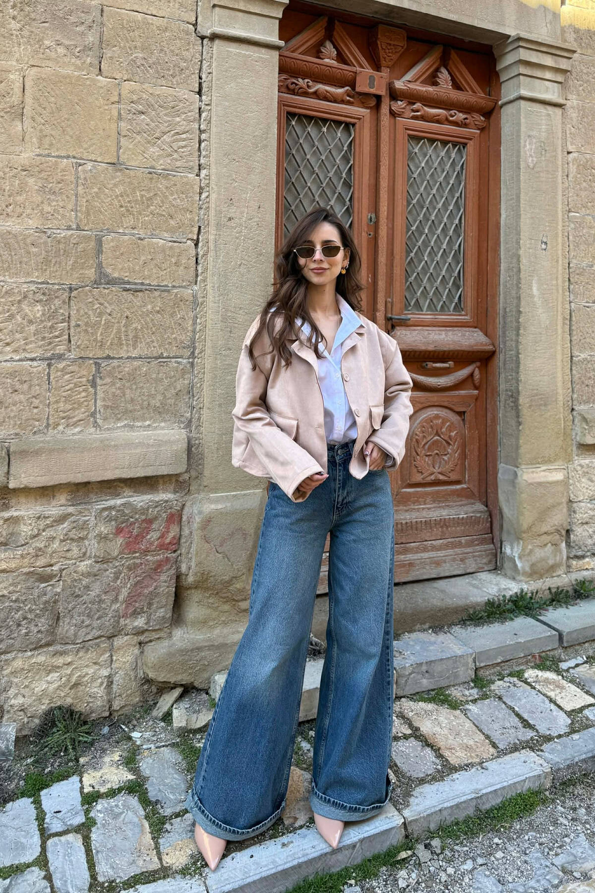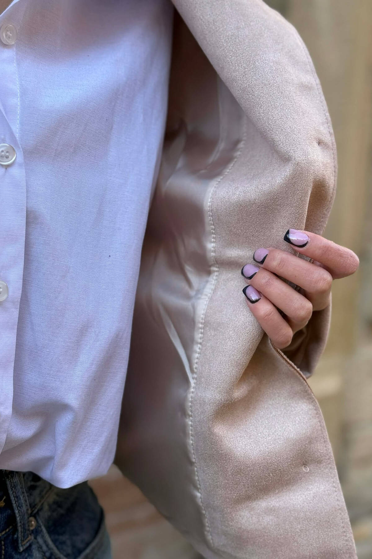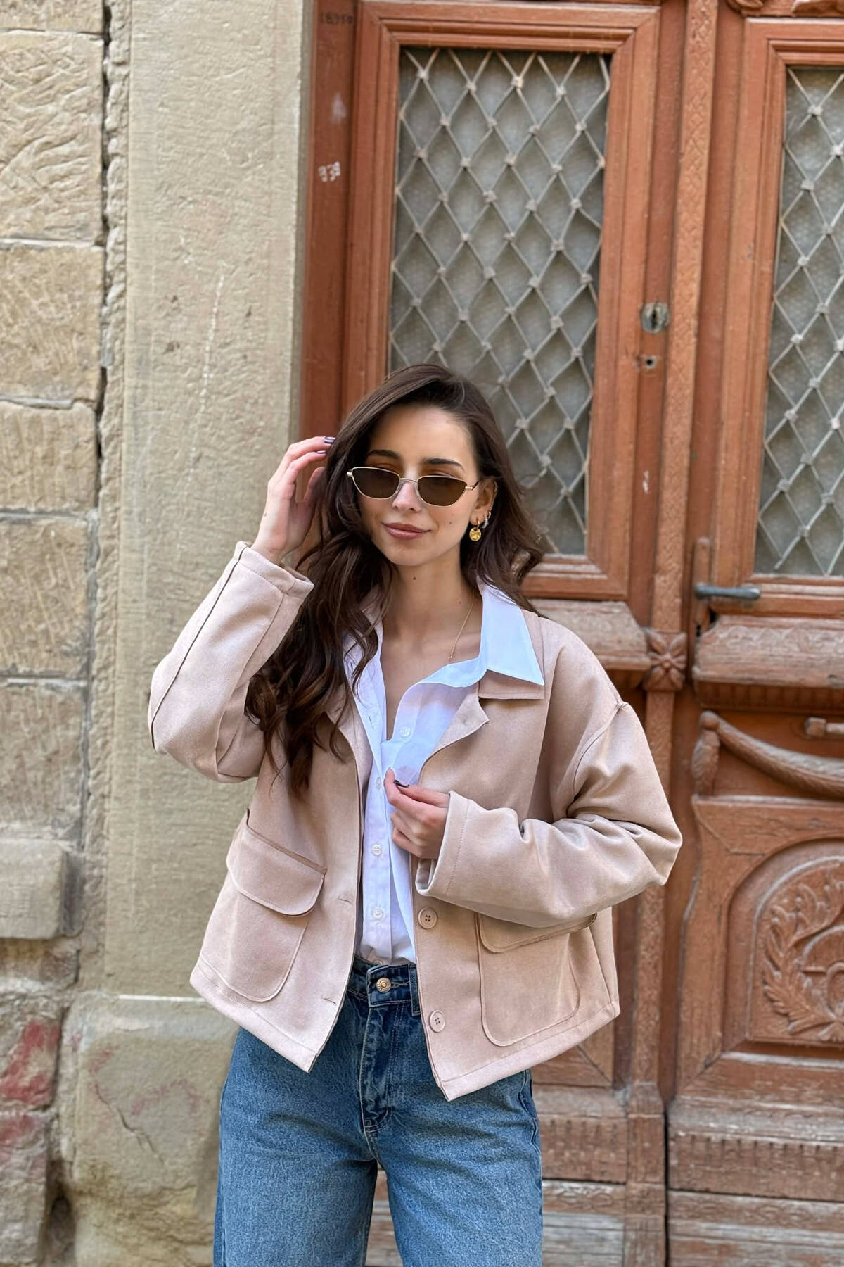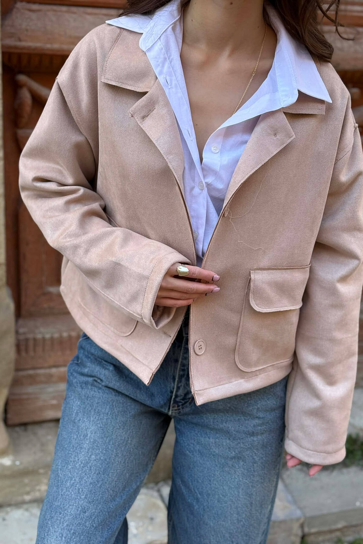 XHAKETË NJË NGJYRËSHE ME XHEPA PËR FEMRA NË NGJYRË BEZHË