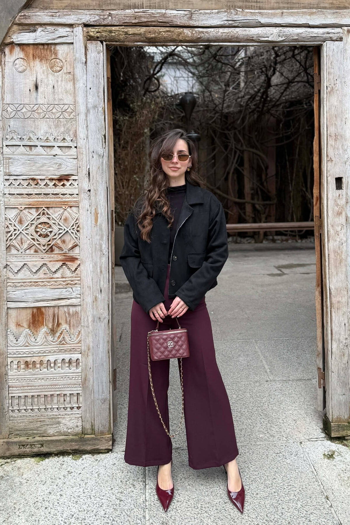 XHAKETË KLASIKE NJË NGJYRËSHE PËR FEMRA NË NGJYRE VISHNJE
