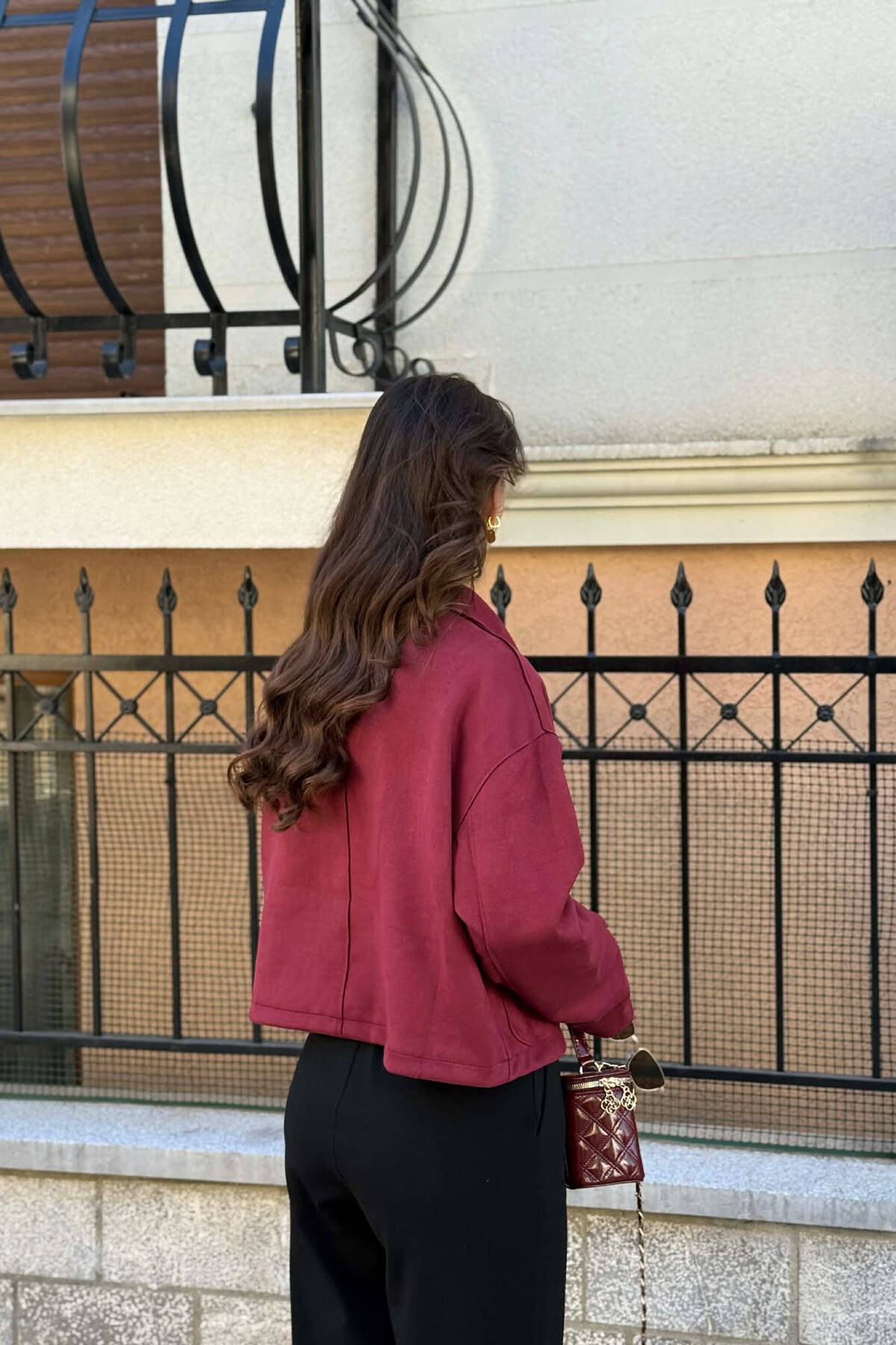 XHAKETË KLASIKE NJË NGJYRËSHE PËR FEMRA NË NGJYRE VISHNJE