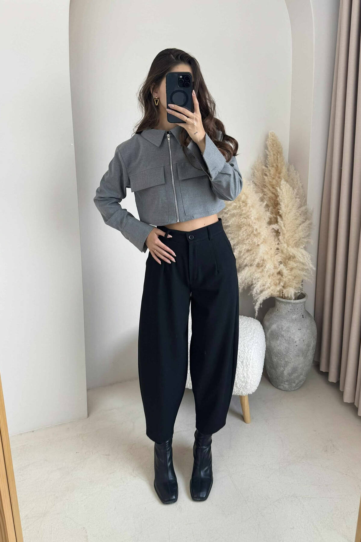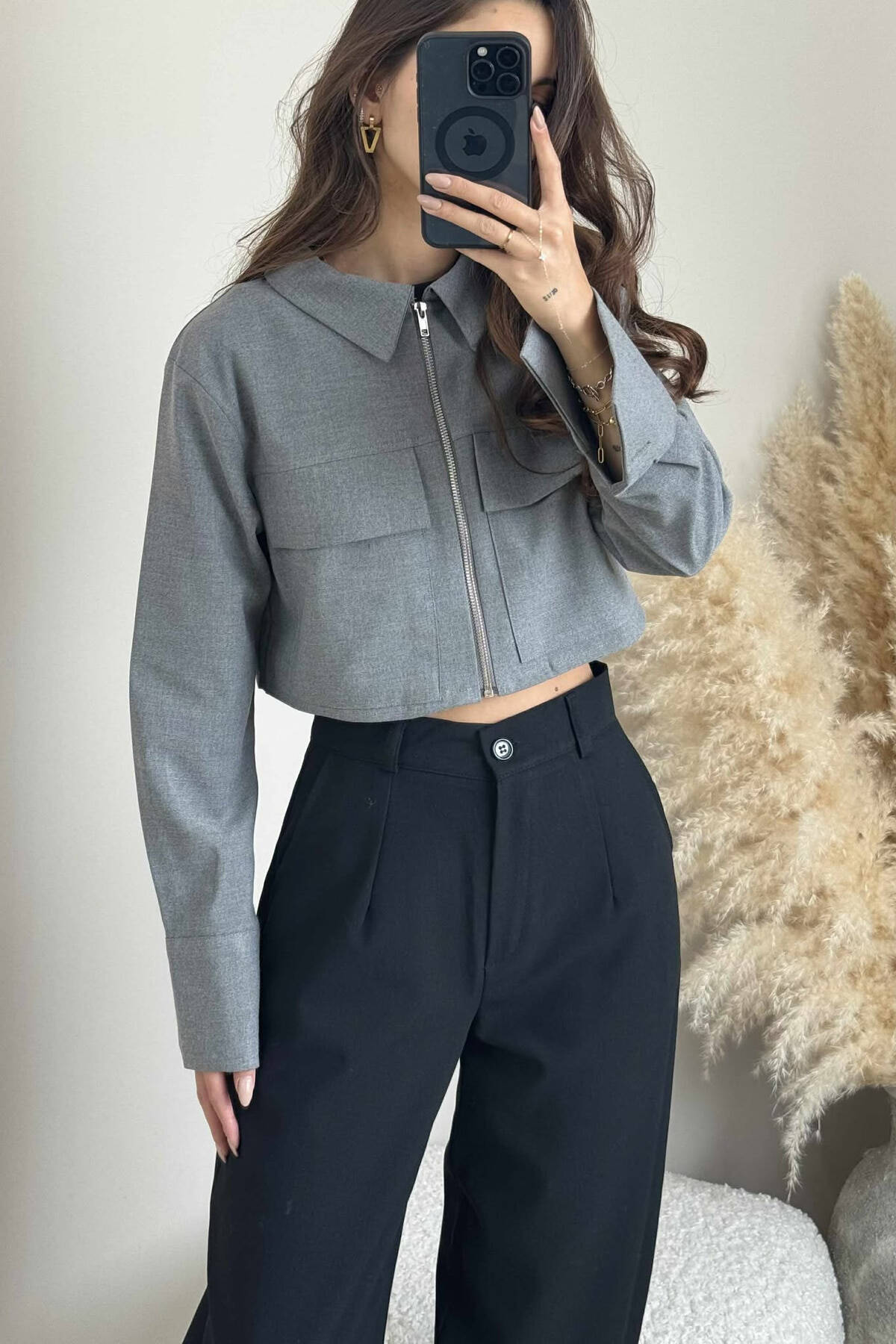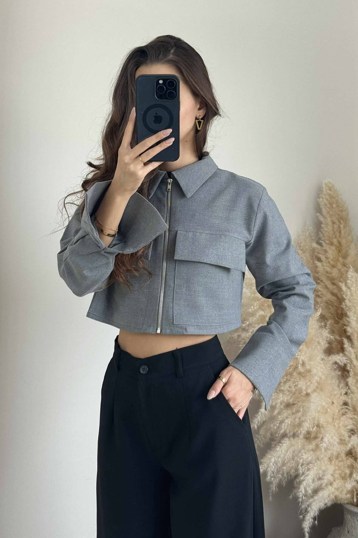 XHAKETË NJË NGJYRËSHE E SHKURTËR PËR FEMRA NË NGJYRËN GRI
