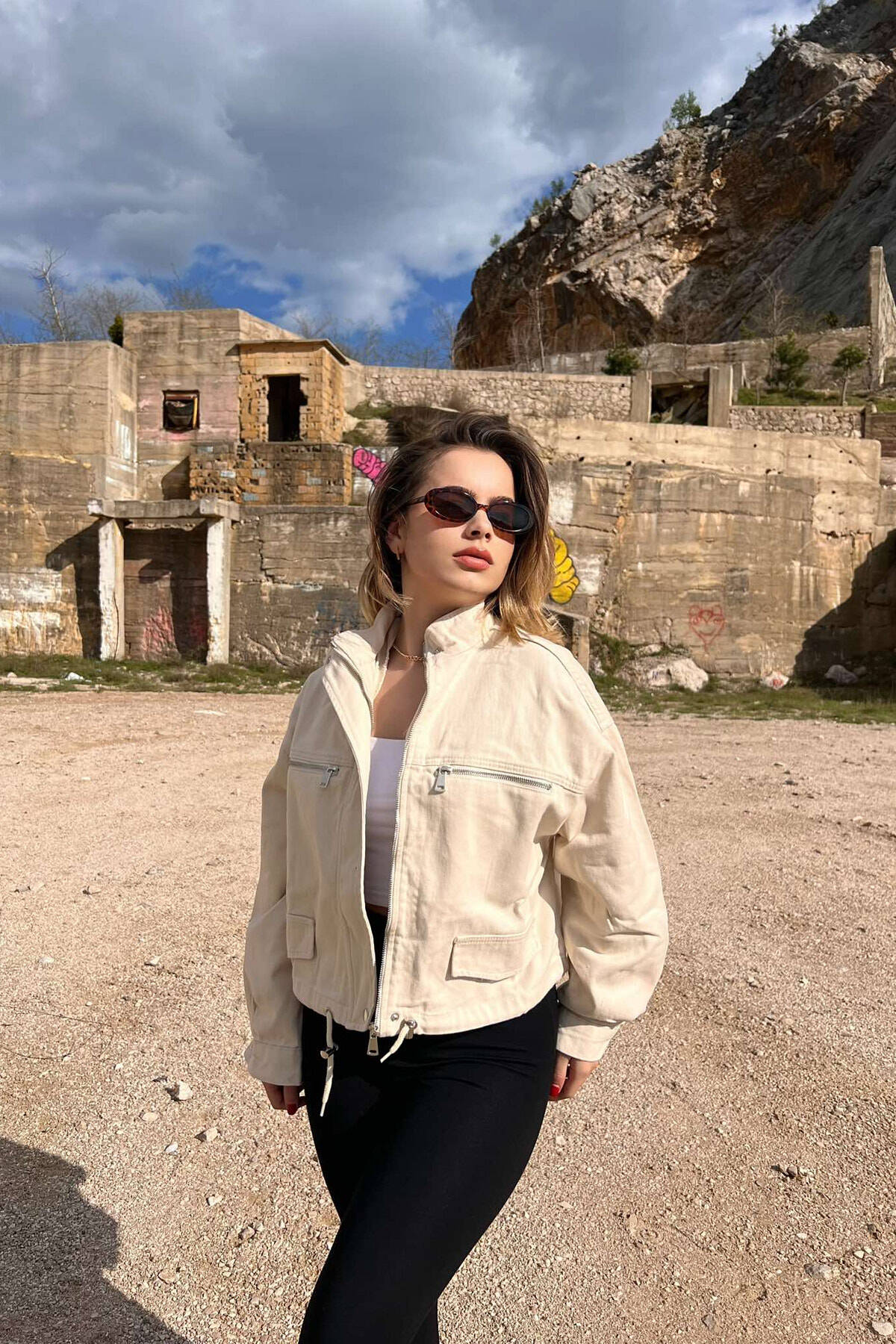 XHAKETË NJË NGJYRËSHE E SHKURTËR PËR FEMRA NË NGJYRËN KREM