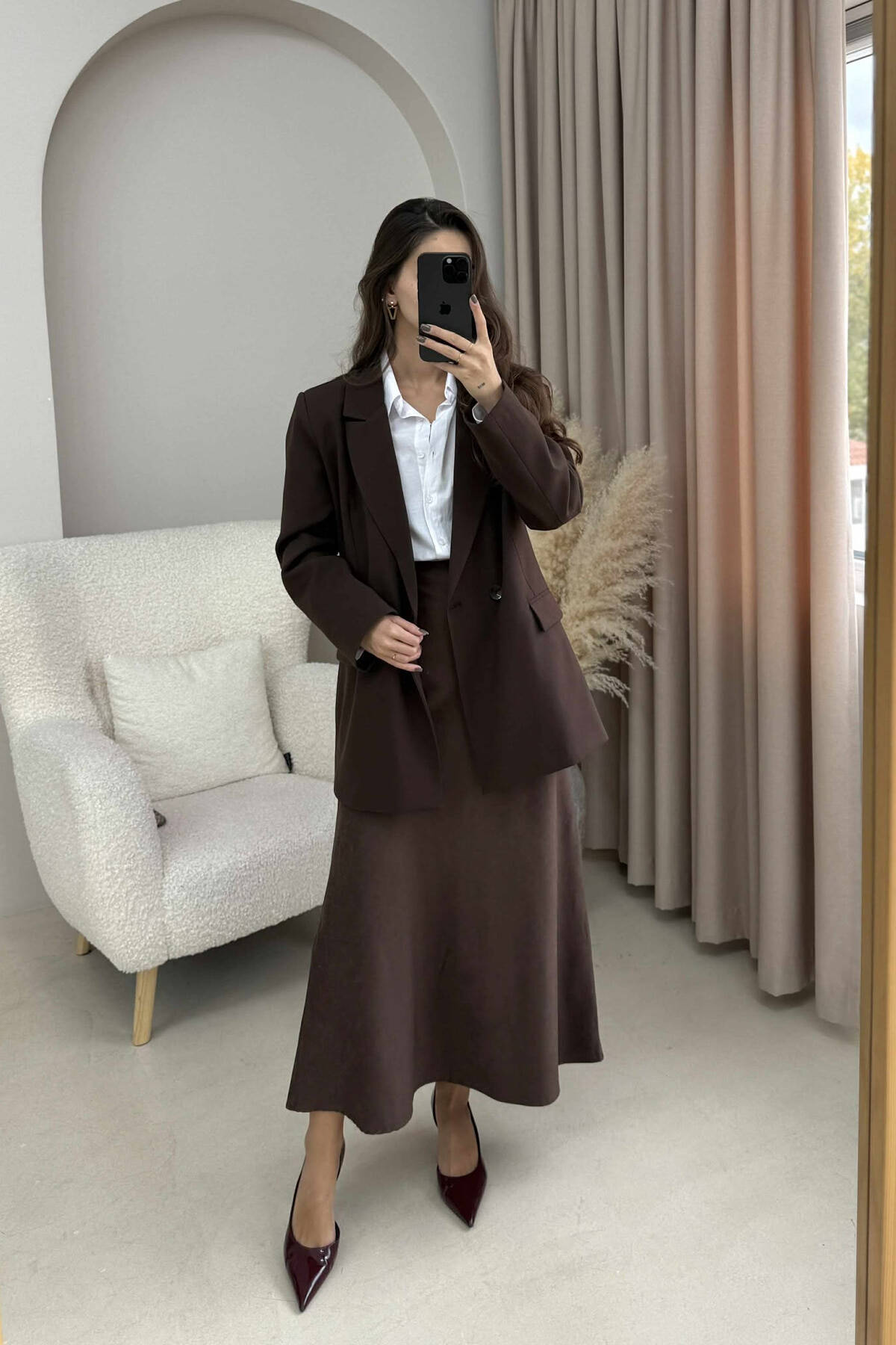 XHAKETË NJË NGJYRËSHE KLASIKE PËR FEMRA NË NGJYRË KAFE TË ERRËT
