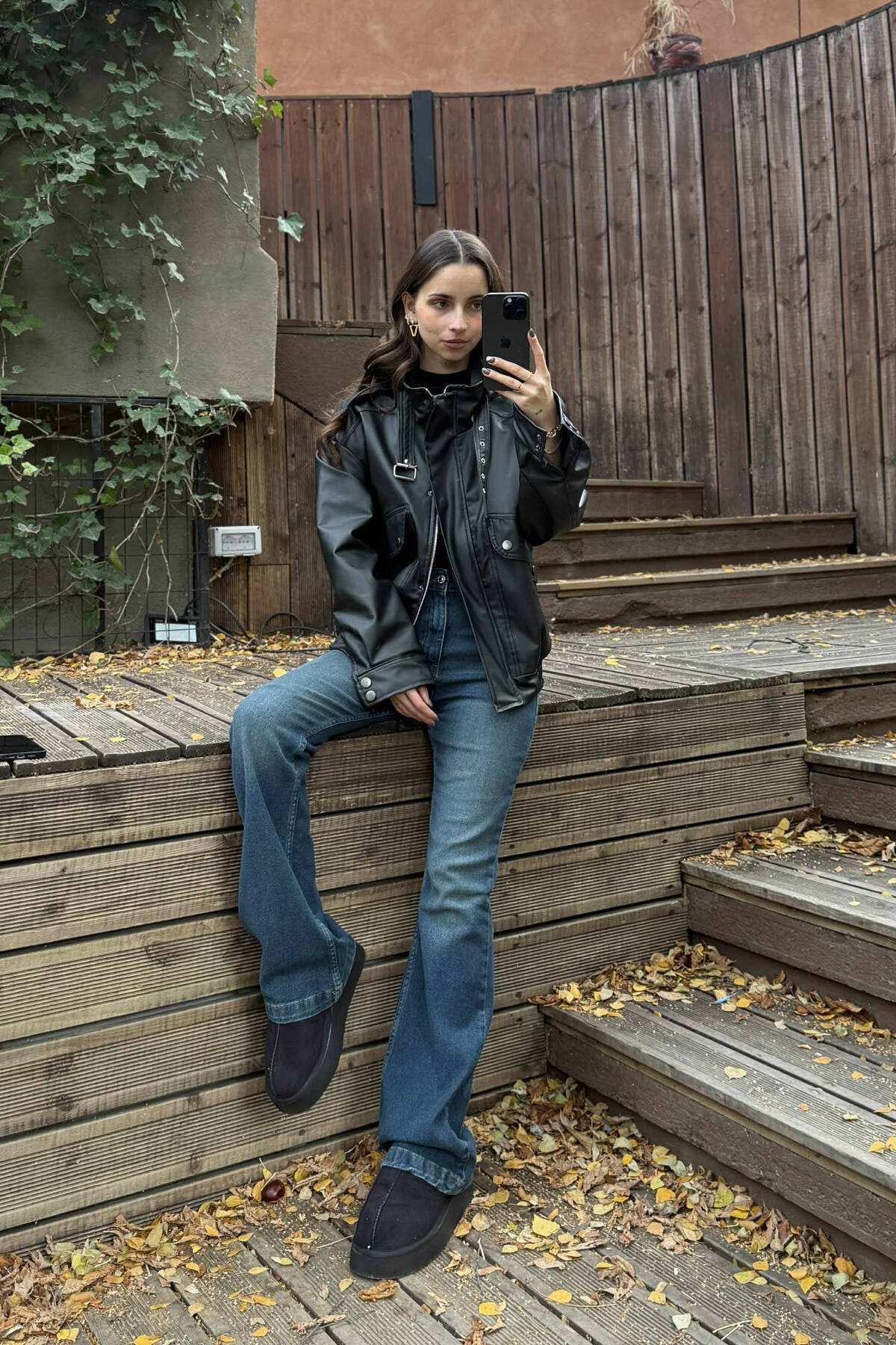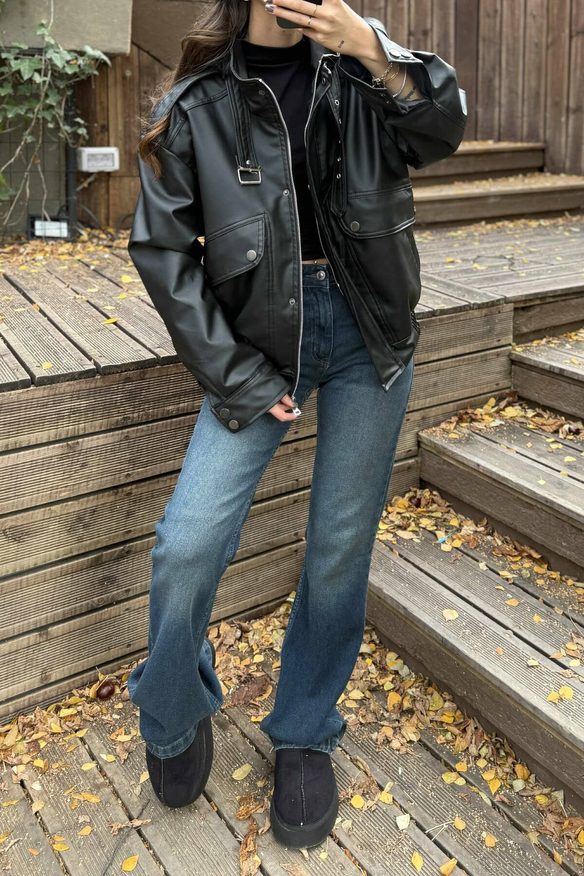 XHAKETË NJË NJGYRËSHE LËKURE PËR FEMRA NË NGJYRË TË ZEZË