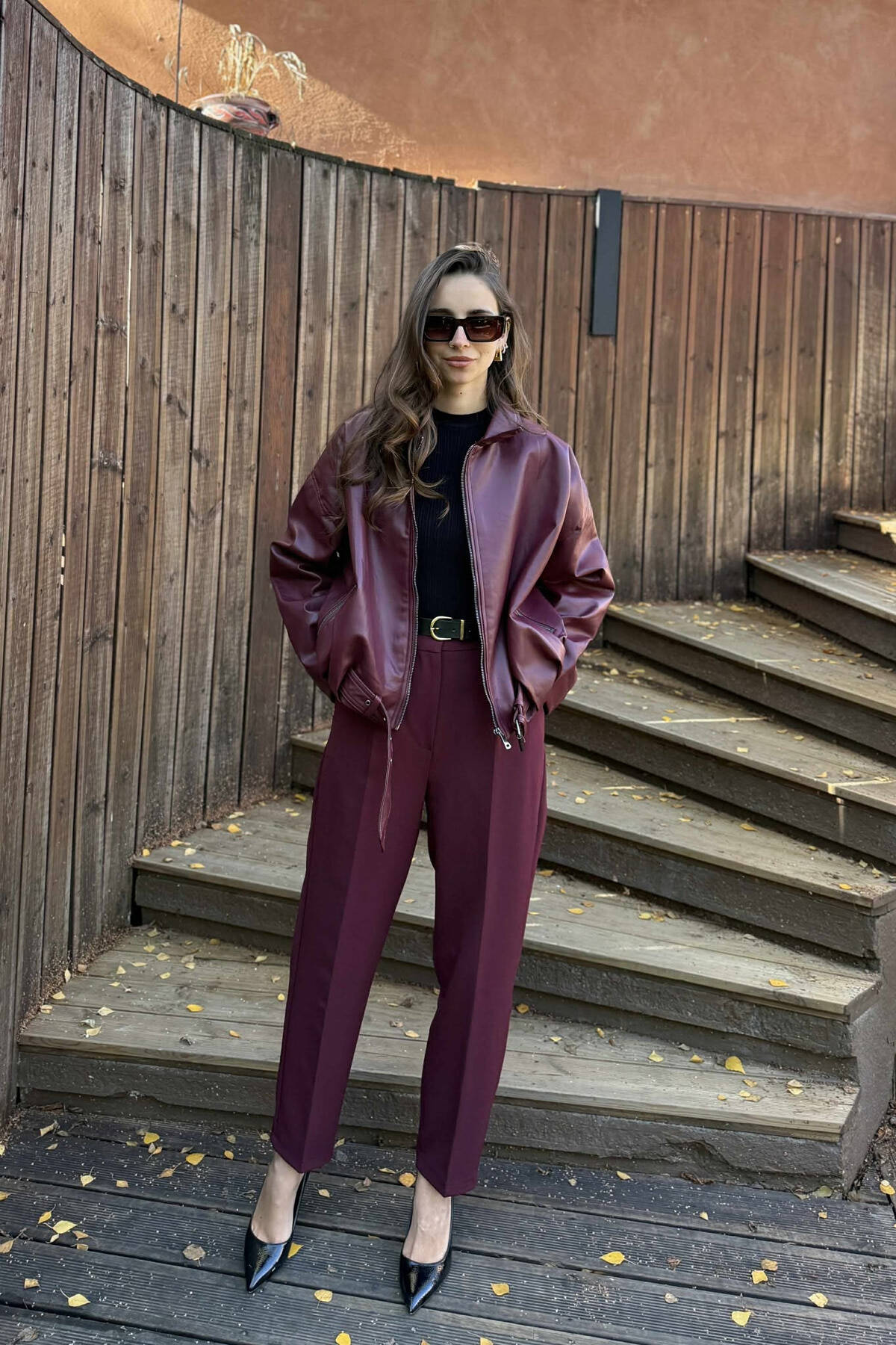 XHAKETË NJË NGJYRËSHE LËKURE PËR FEMRA NË NGJYRË VISHNJË