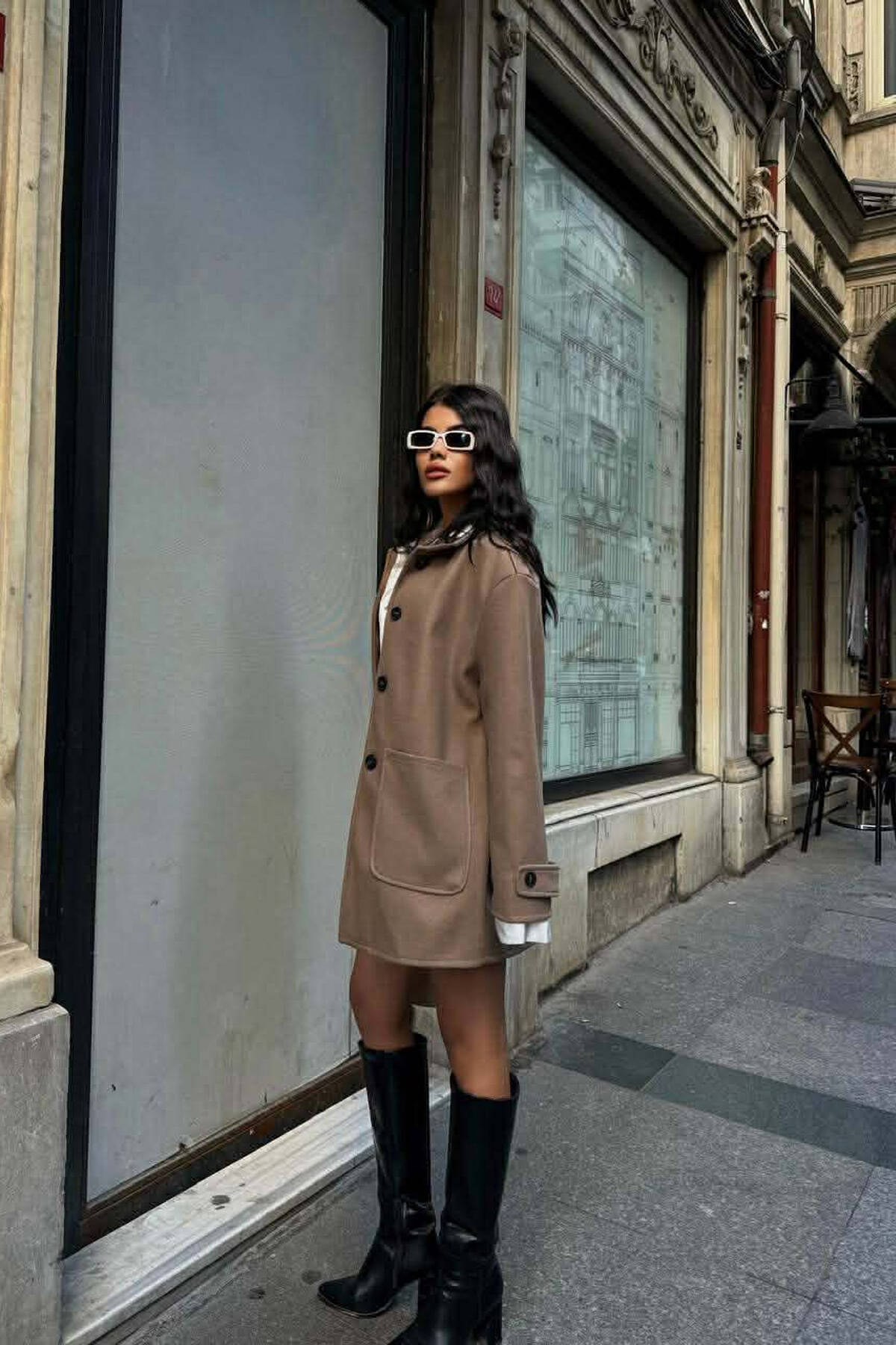 WOOL SIMPLE WOMEN JACKET BROWN/KAFE