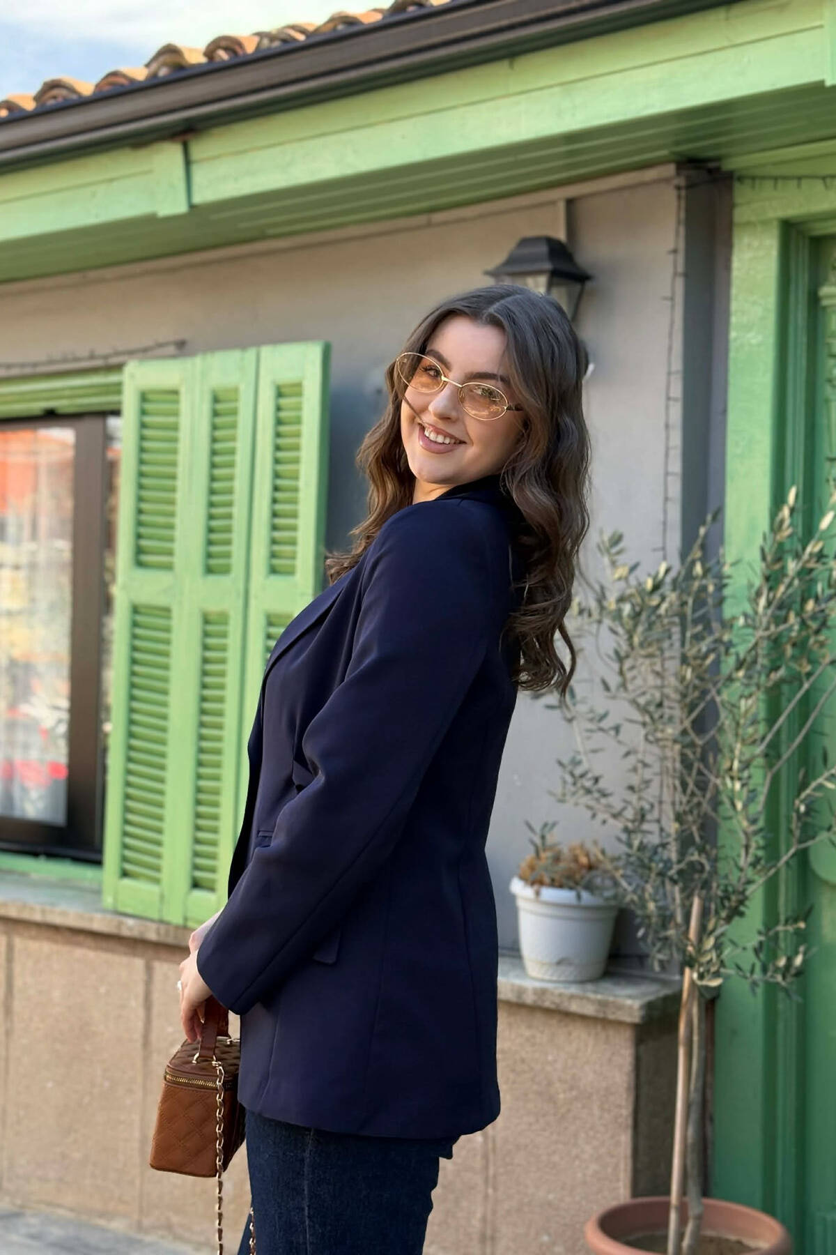 XHAKETË KLASIKE NJË NGJYRËSHE PËR FEMRA NË NGJYRE ULLIRI