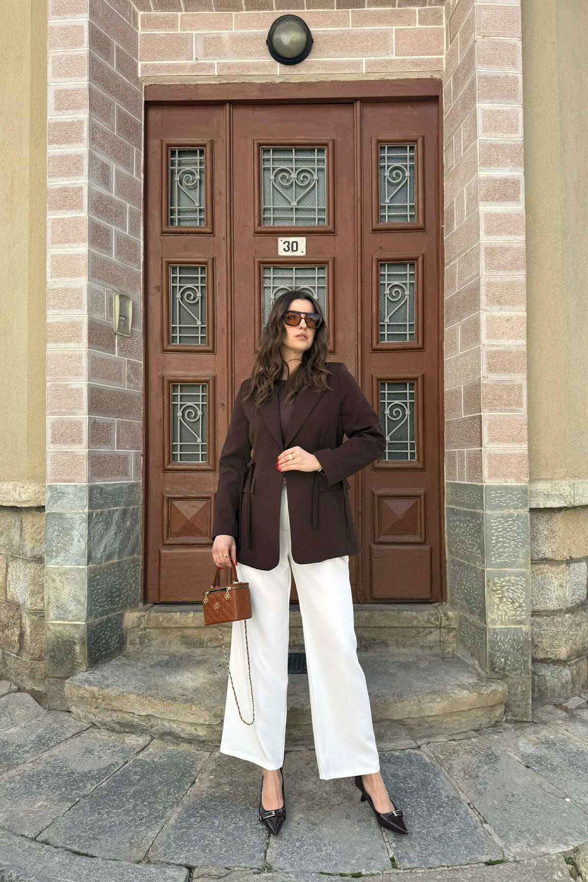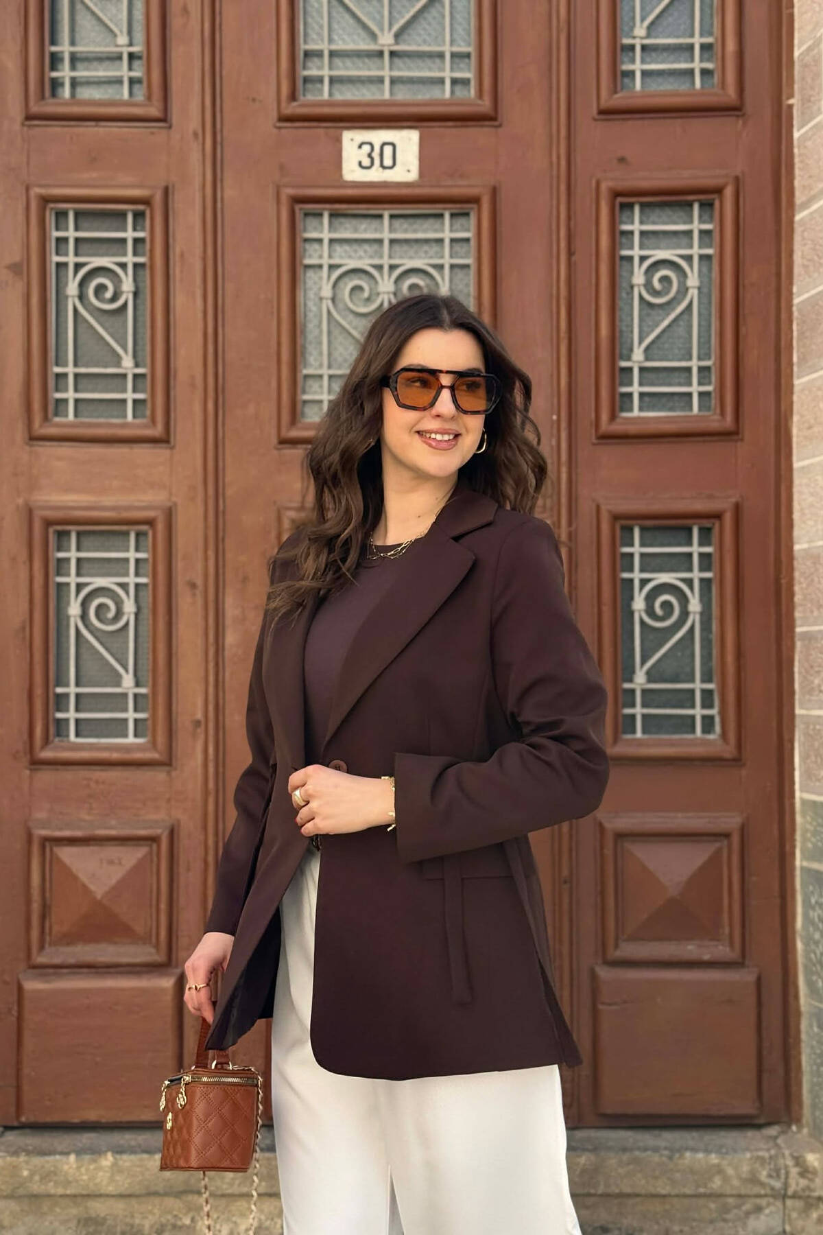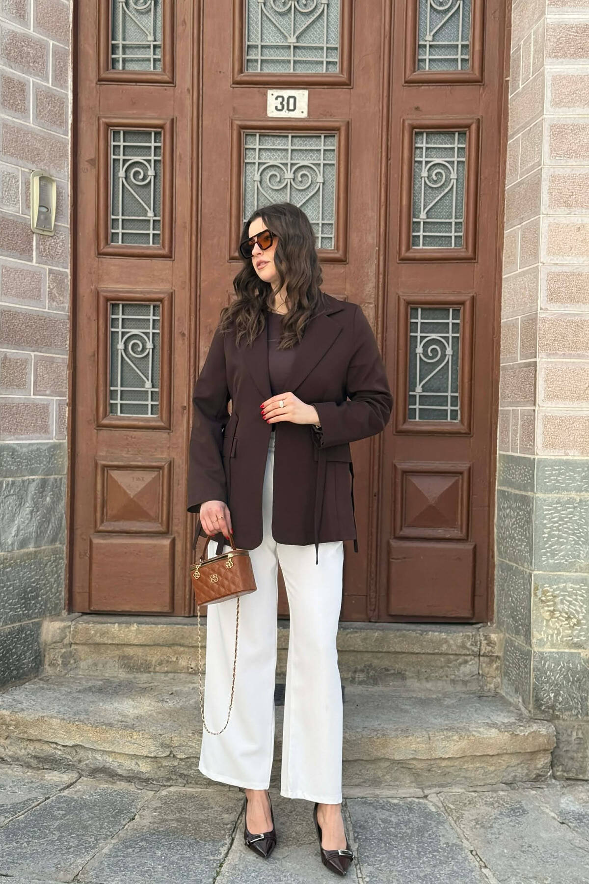 XHAKETË NJË NGJYRËSHE ME DETAJIN E LIDHSES PËR FEMRA NË NGJYRE KAFE
