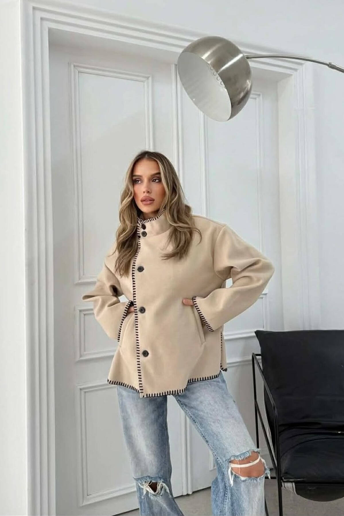 XHAKETE NJE NGJYRESHE ME BUTONA PER FEMRA NE NGJYRE KREM