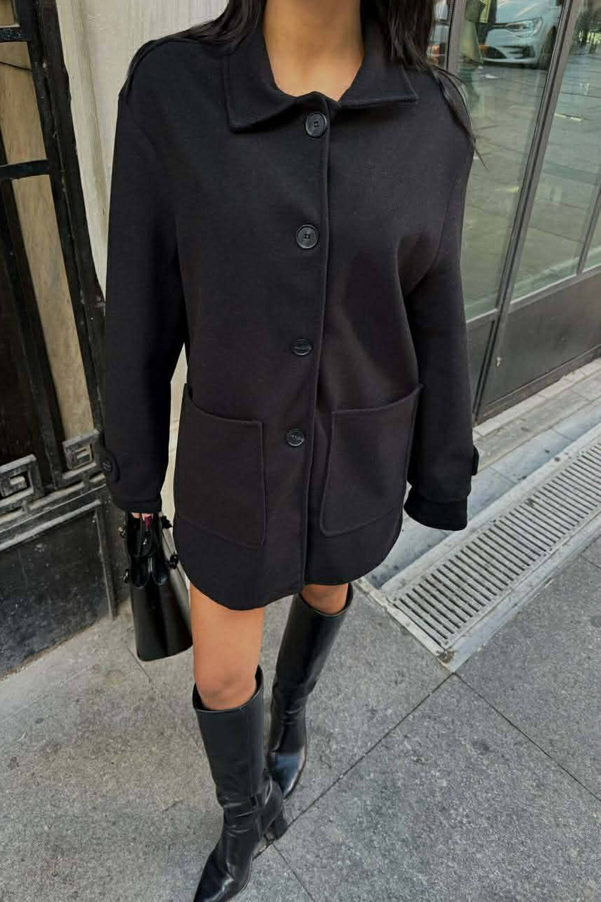 WOOL SIMPLE WOMEN JACKET BLACK/ E ZEZE