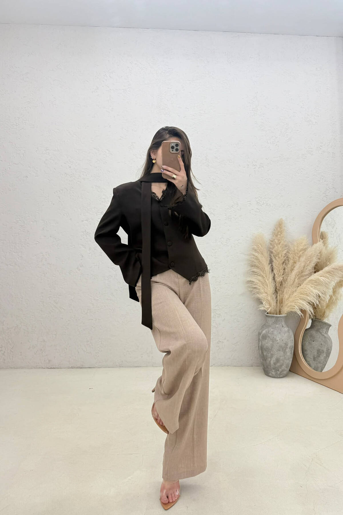 XHAKETE NJE NGJYRESHE ME DETAJ DANTELLE PER FEMRA NE NGJYRE KAFE